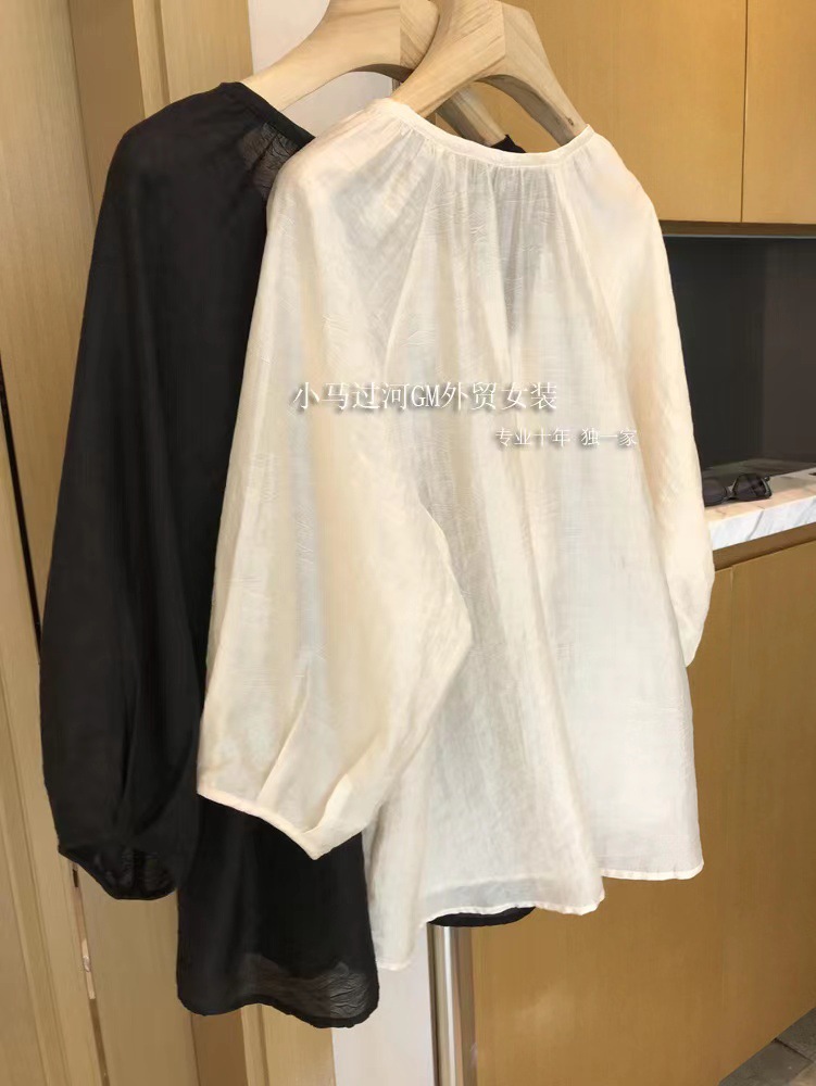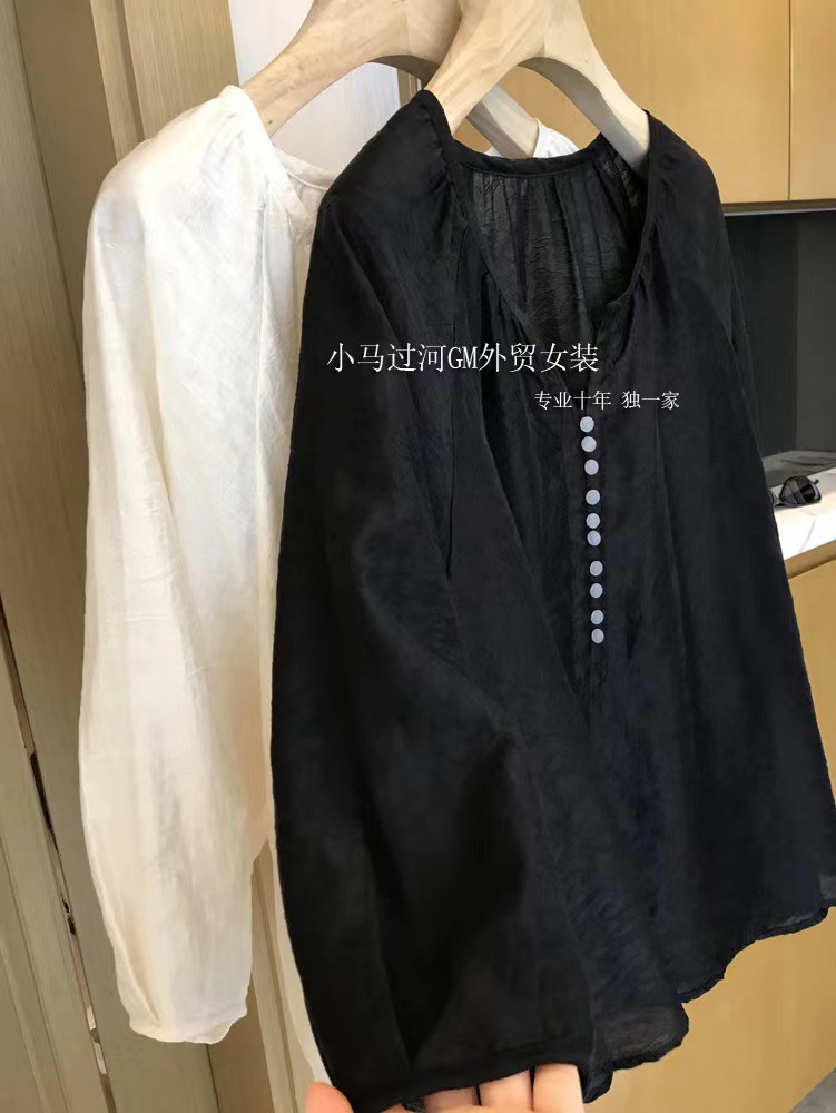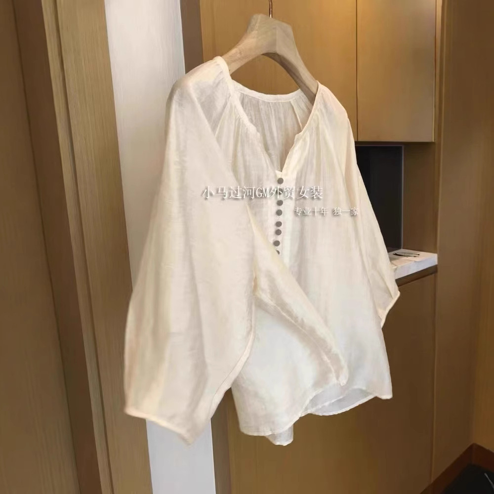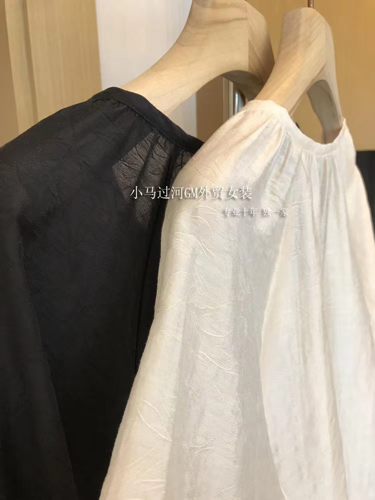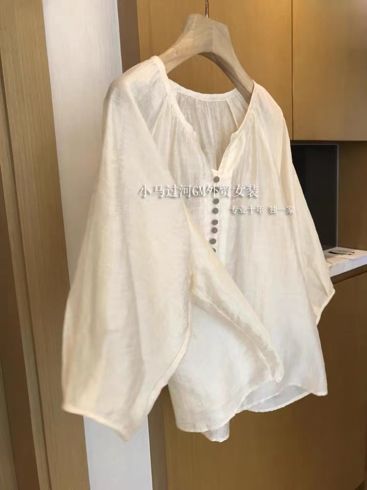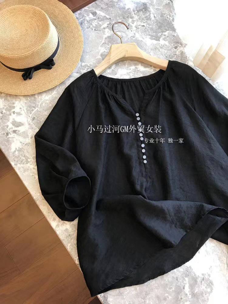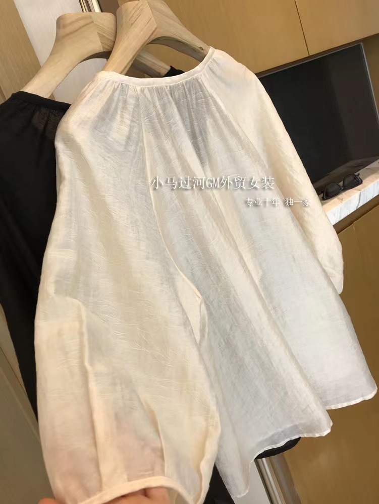 怒推,上身一秒入夏!!灵动褶皱~天丝提花七分袖宽松小V字衬衫女