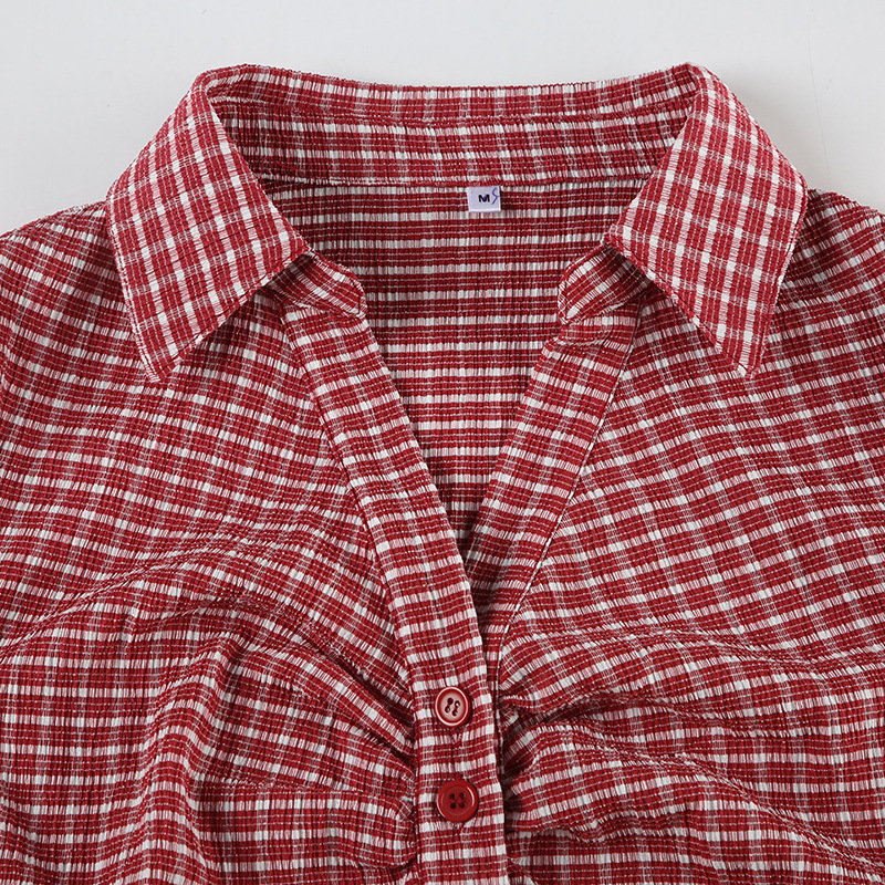 영국 스타일 V-Neck 체크 무늬 블라우스 우아한 여성용 허리 버튼 버블 슬리브 탑스토어 가기