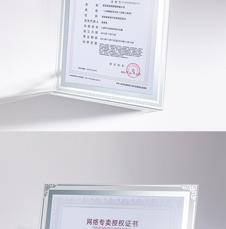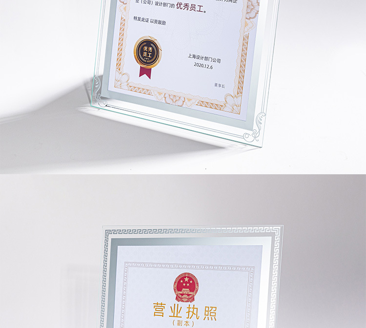 투명 A5 액자 A4 테이블 장식 명예 특허 인증서 액자 크리스탈 유리 상장 액자 도매스토어 가기