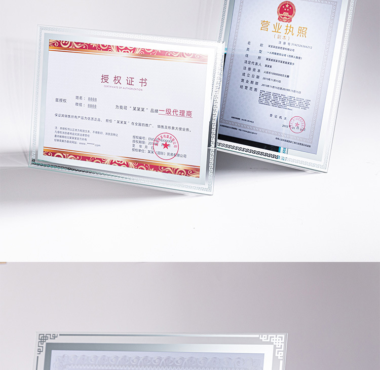 투명 A5 액자 A4 테이블 장식 명예 특허 인증서 액자 크리스탈 유리 상장 액자 도매