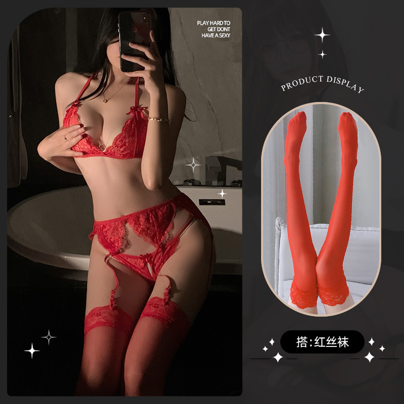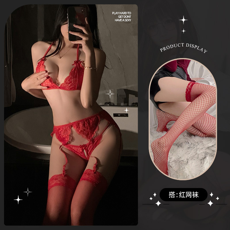 • 레드 쓰리피스 세트 [브라+팬티+가터] (양말은 포함되지 않습니다)