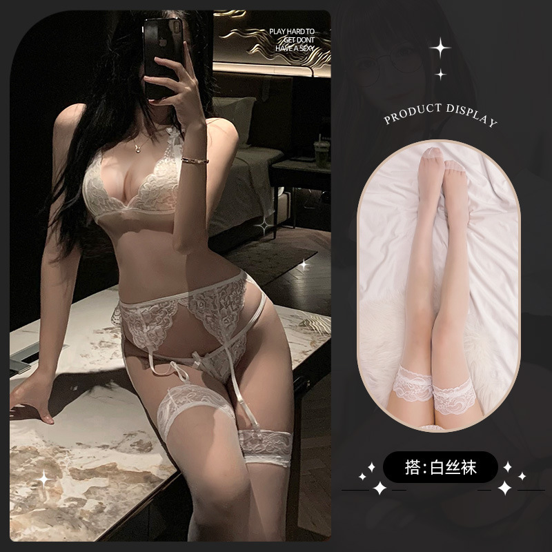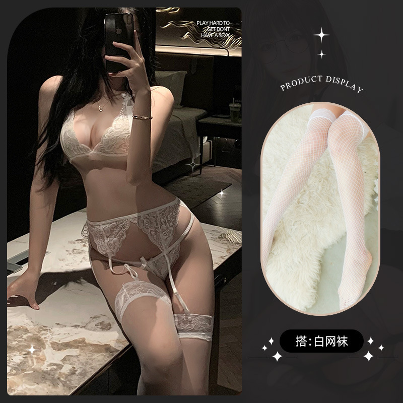 • 화이트 4종 세트 [브라+팬티+가터+화이트 망사스타킹]