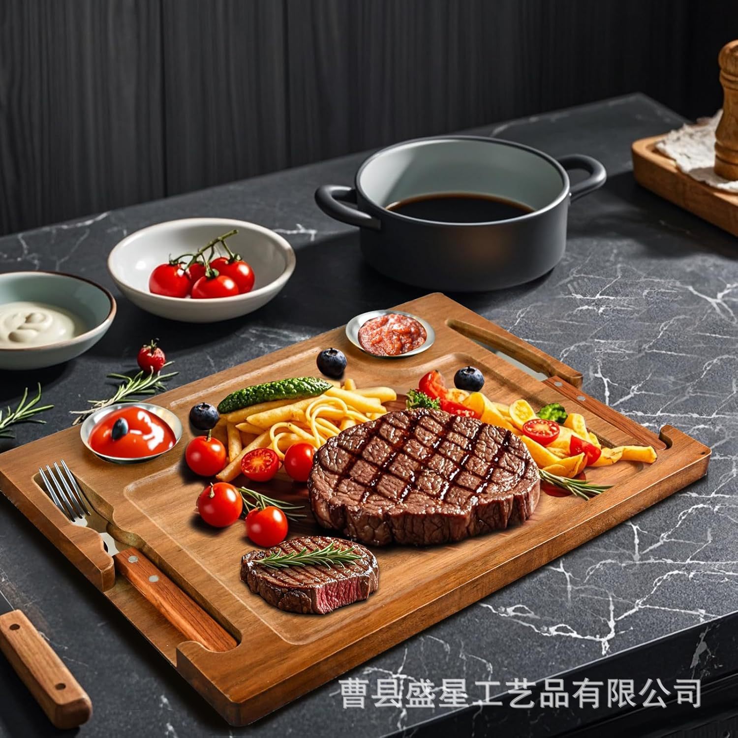 칼과 포크가 포함된 새로운 나무 도마 크리에이티브 주방 사각형 도마 원목 스테이크 치즈 트레이