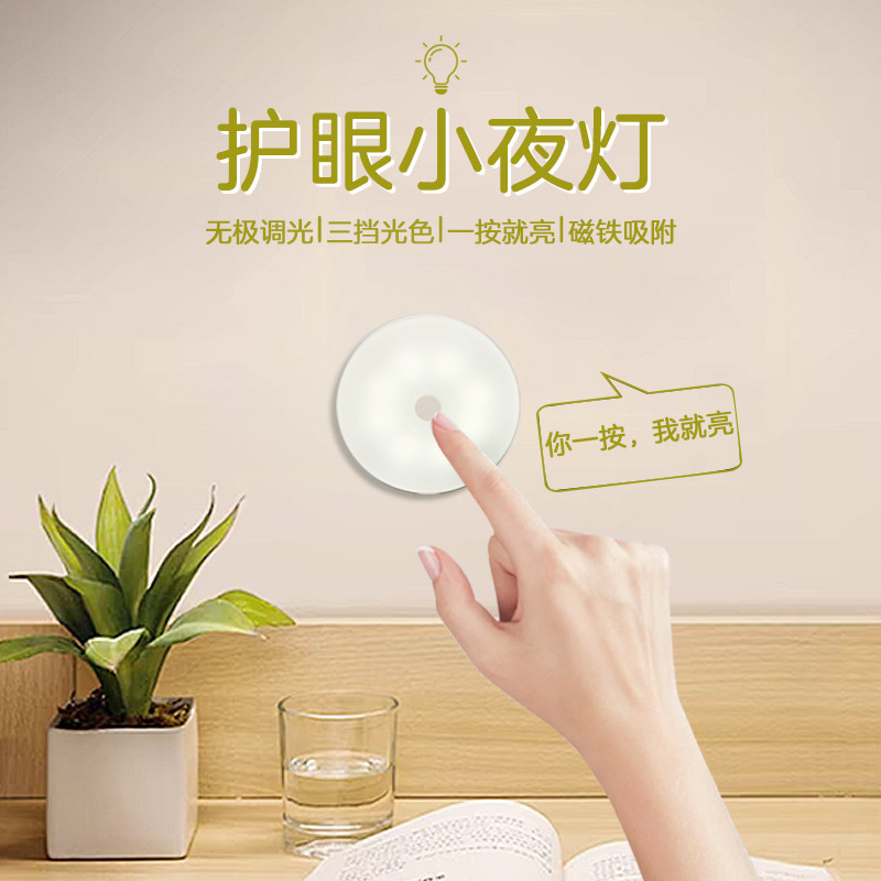 키 감지 없음 LED 조명 자기 원형 야간 조명 침실 머리맡 아기 임신 엄마 수유 기숙사 야간 조명스토어 가기