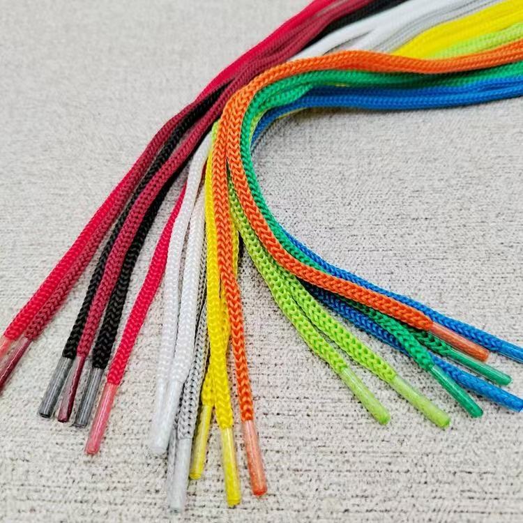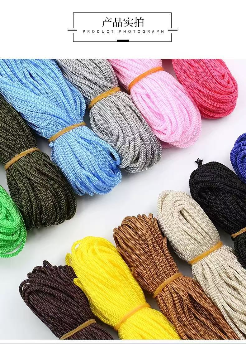 공장 재고 흑백 컬러 휴대용 로프 PP 폴리프로필렌 로프 4바늘 중공 조임끈은 열로 절단 및 헤드링을 할 수 있습니다.