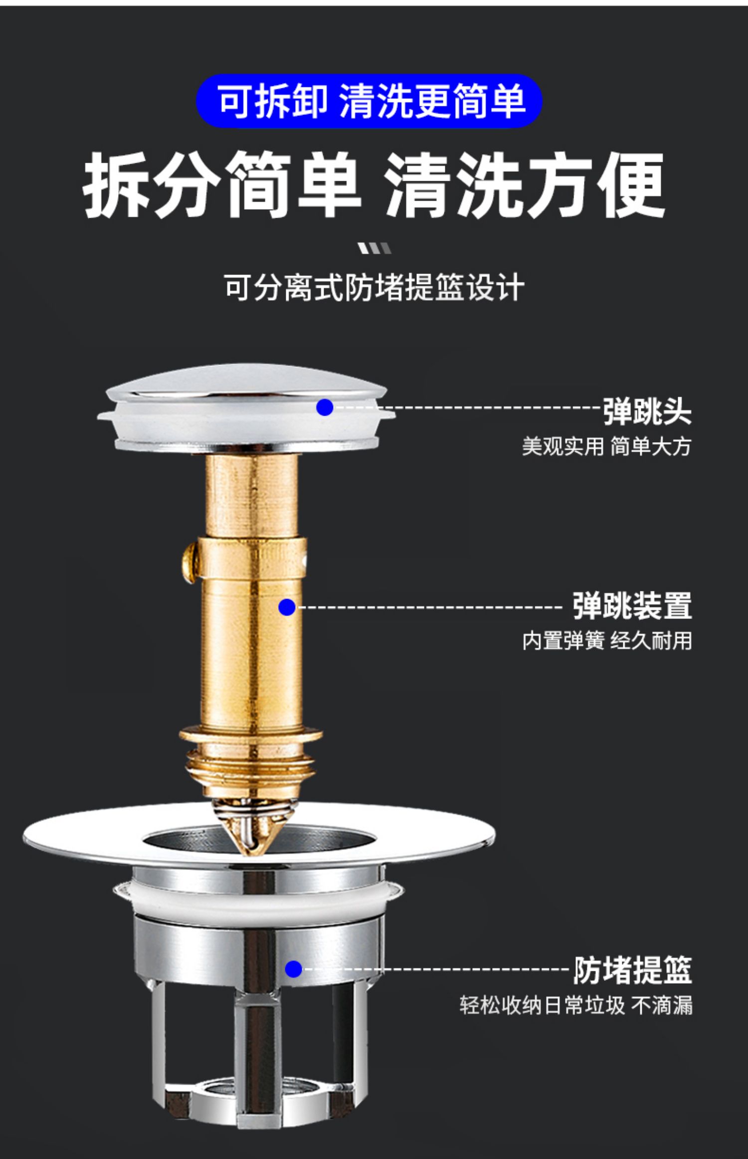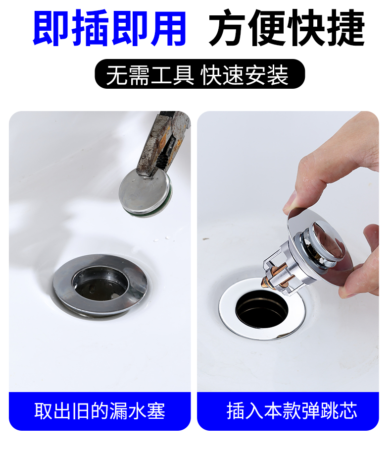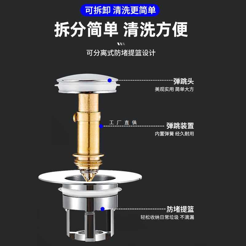✅세면대 세면대 누출 플러그 분지 배수 바운스 코어 프레스 필터 바운스 플러그 유니버설