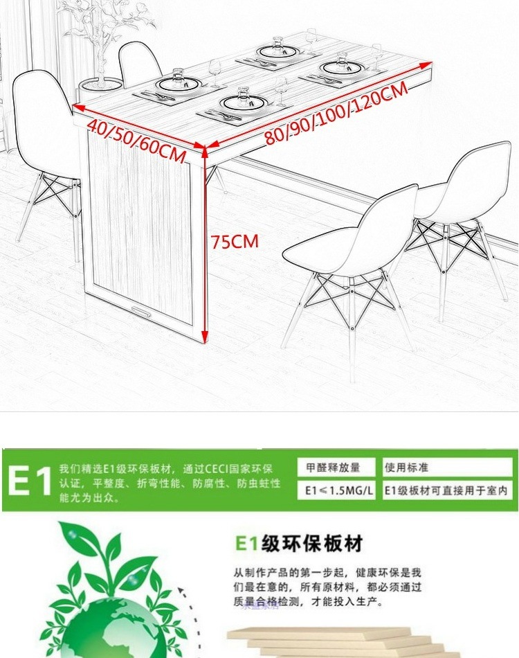 접이식 테이블 식탁 소형 가정용 간단한 주방 조작대 텔레스코픽 보이지 않는 벽걸이형 테이블 바 테이블 및 T&