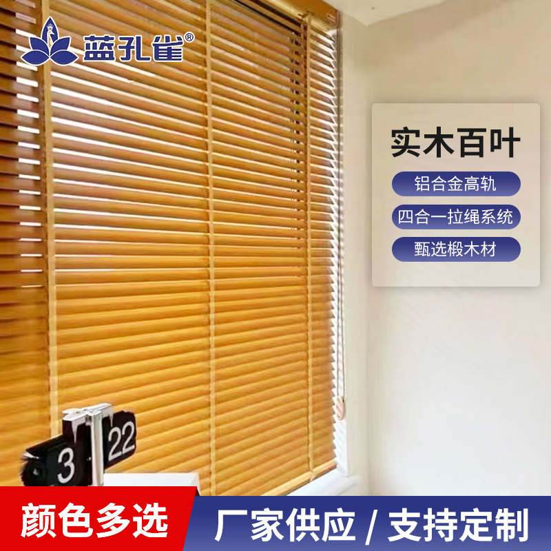 맞춤형 푸른 공작 단단한 나무 커튼 침실 블라인드 새로운 중국 스타일의 주택 개선 간단한 참피나무 분위기 나무 블라인드