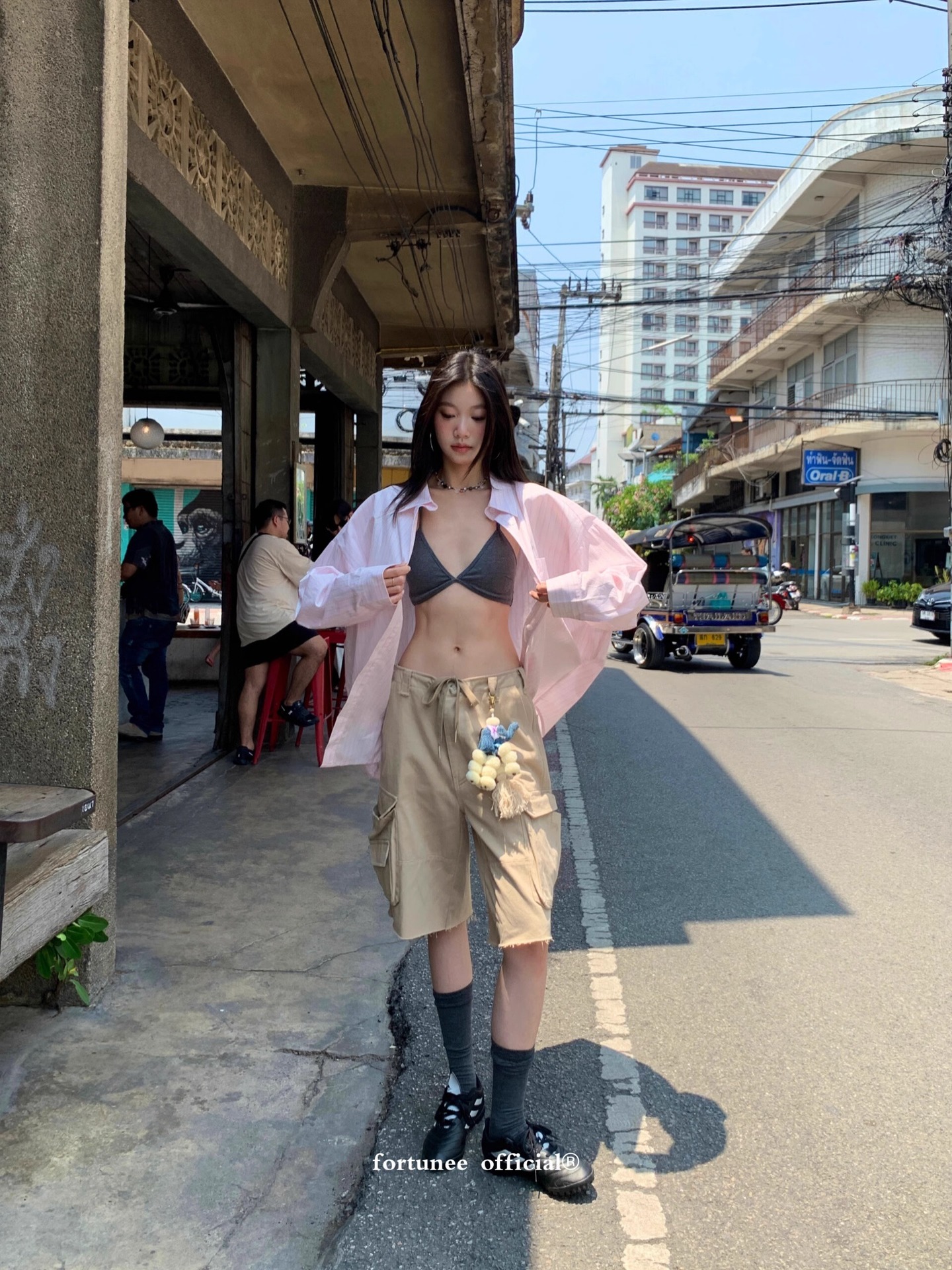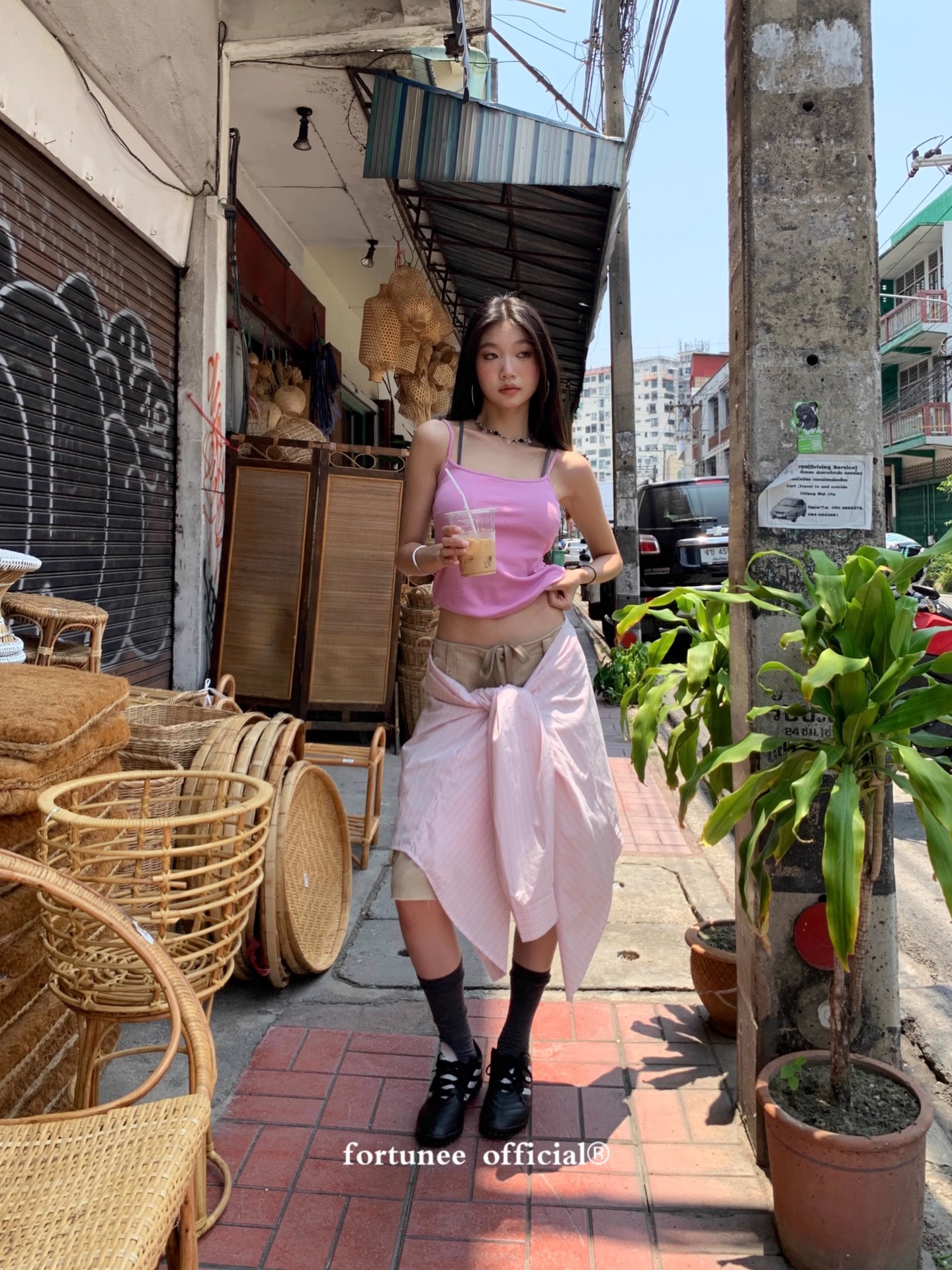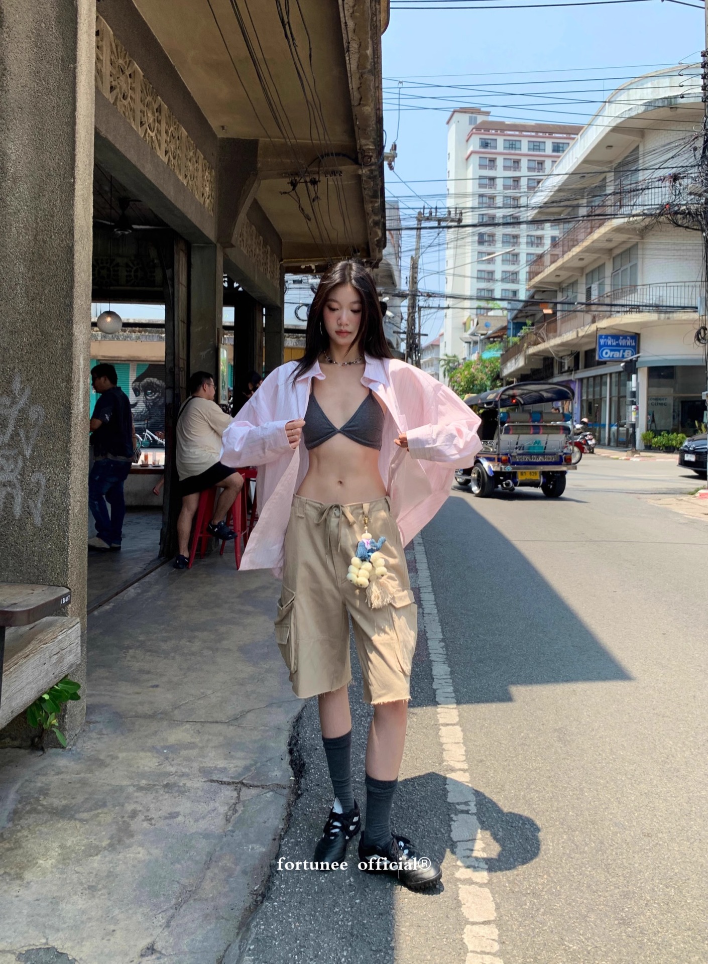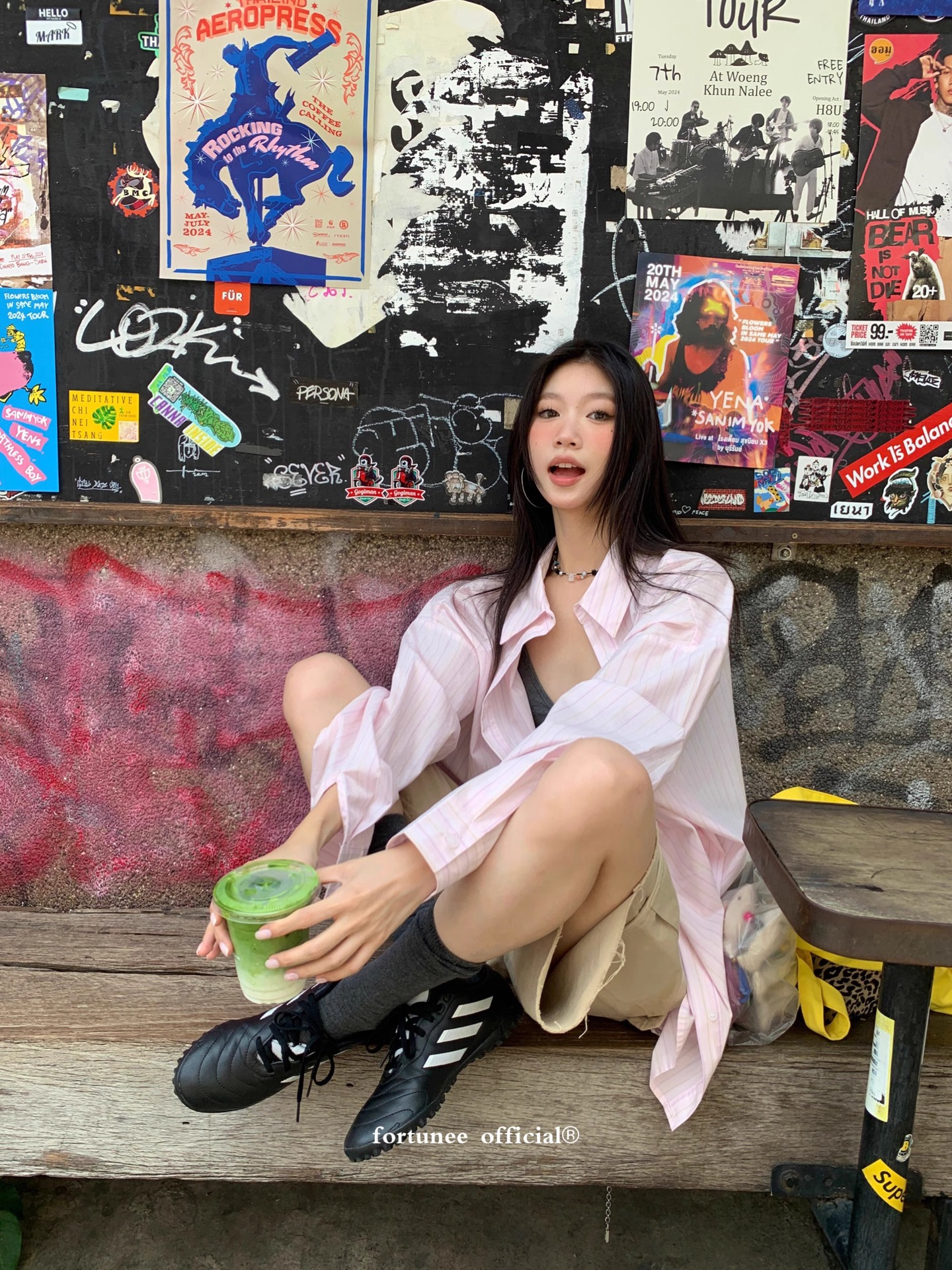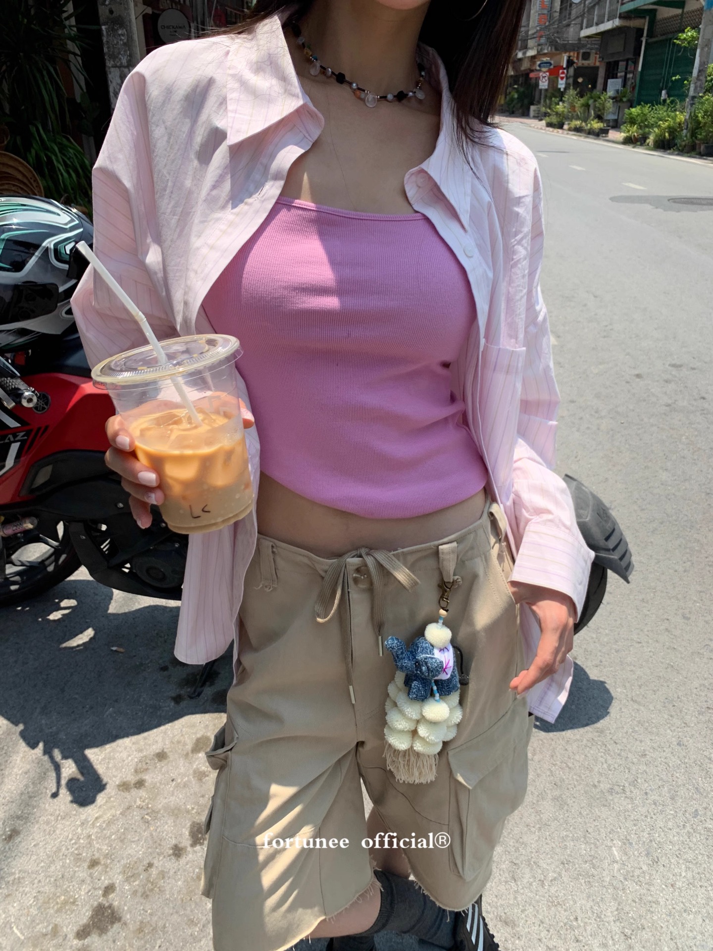 3062 # 포춘 핑크 스트라이프 셔츠 루즈핏 다용도 캐주얼 탑 독특한 셔츠 자외선 차단 긴팔스토어 가기