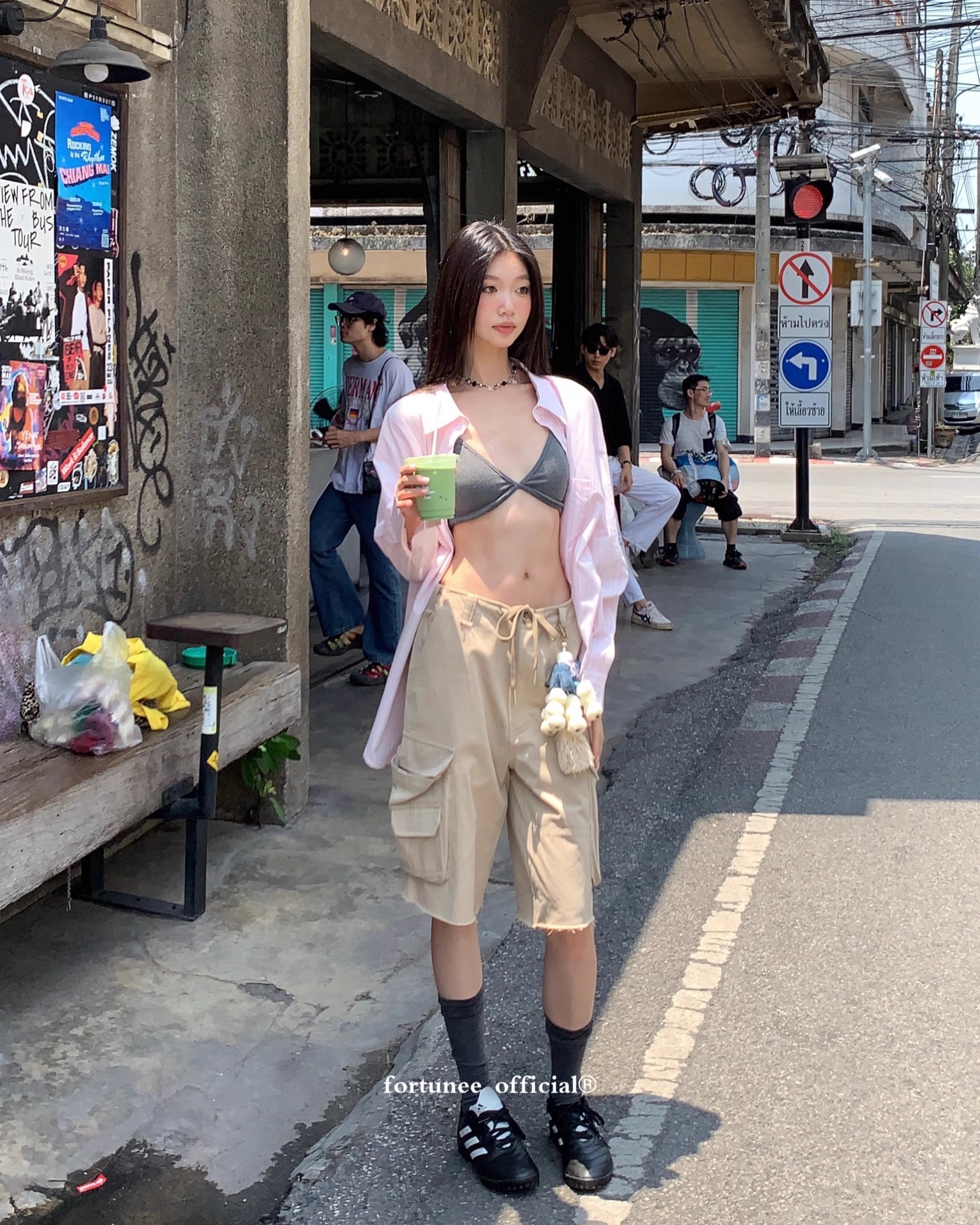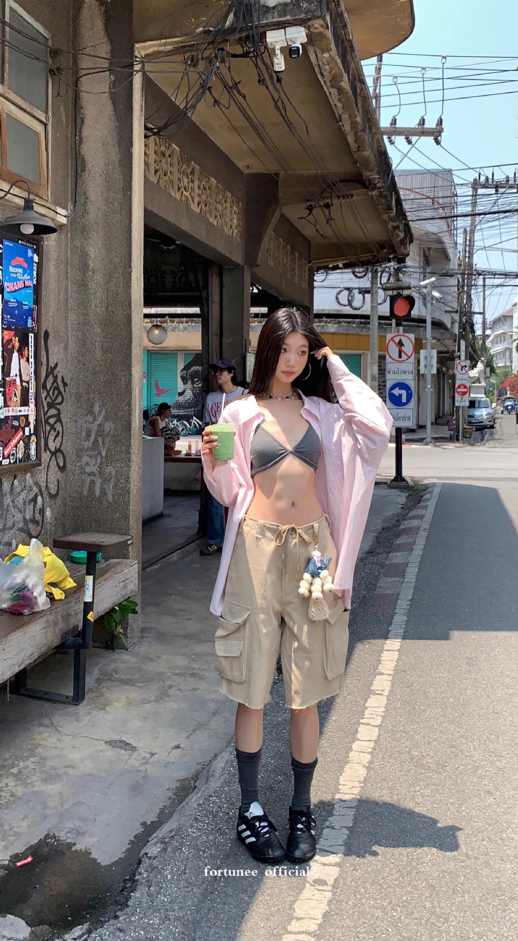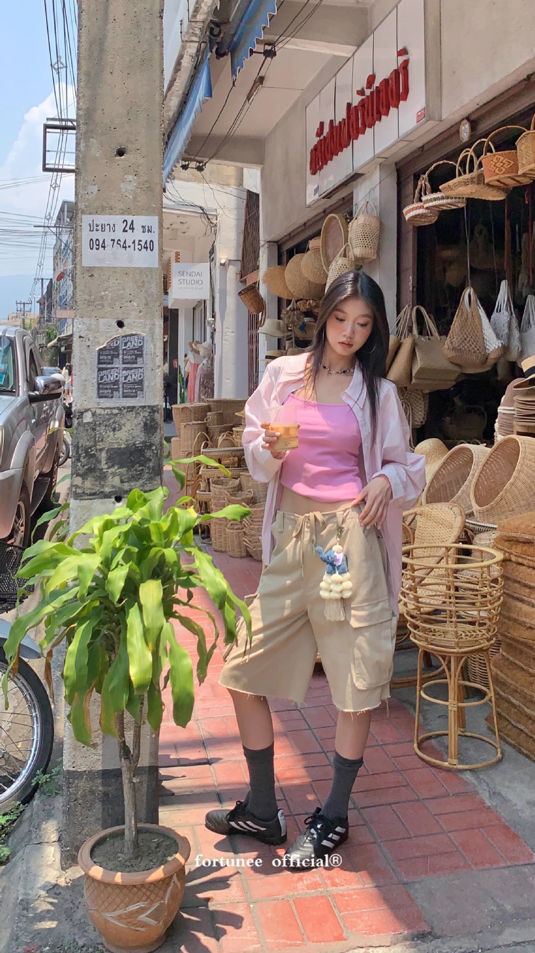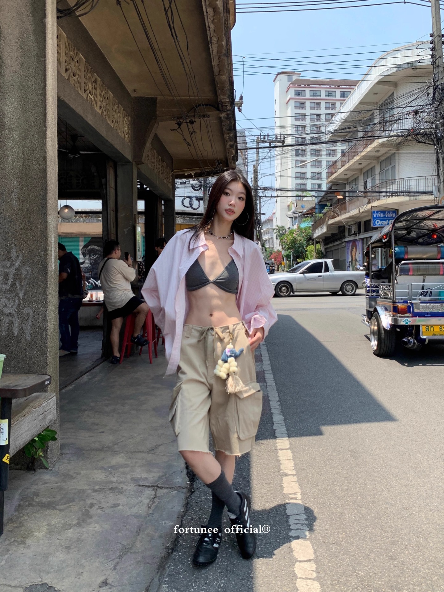 3062 # 포춘 핑크 스트라이프 셔츠 루즈핏 다용도 캐주얼 탑 독특한 셔츠 자외선 차단 긴팔스토어 가기