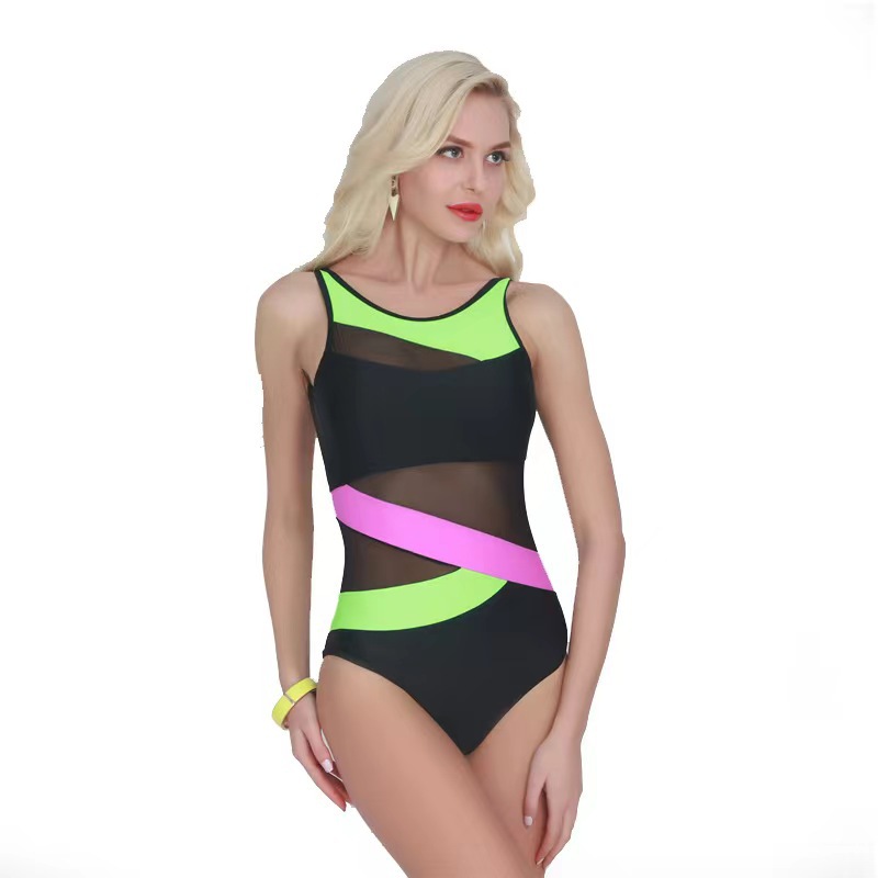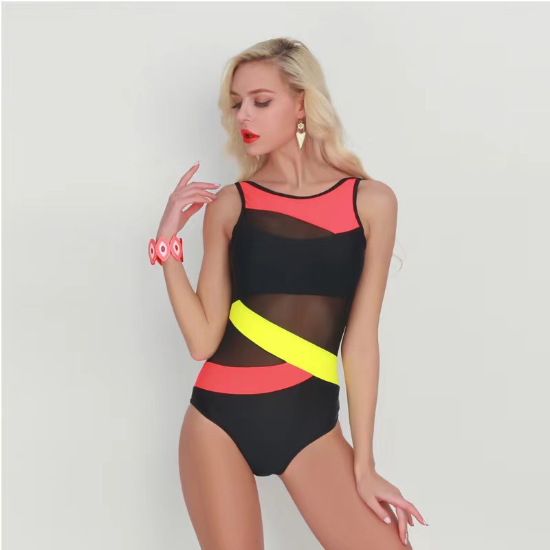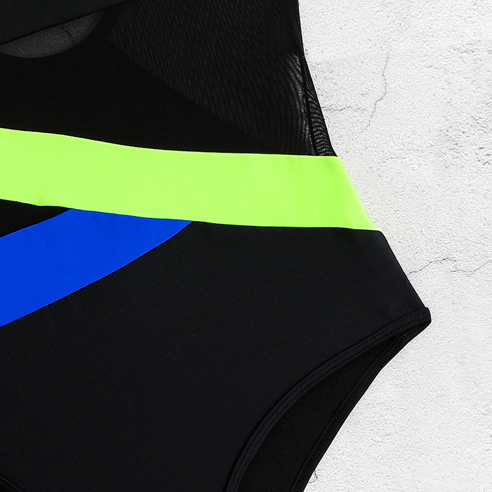 수영복 여성 메쉬 허리 스포츠 경쟁 점프 슈트 솔리드 컬러 스플 라이스 원피스 크로스 보더 유럽과 미국 스타일의 수영복스토어 가기