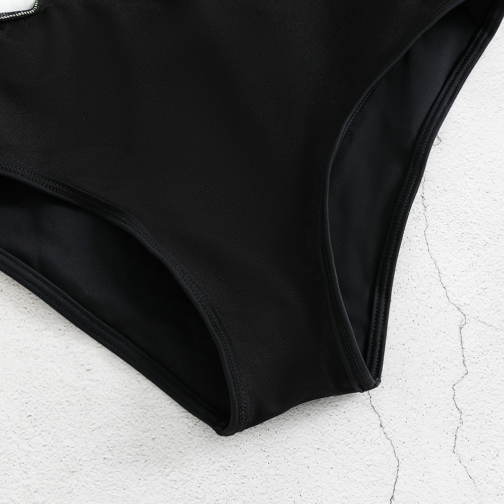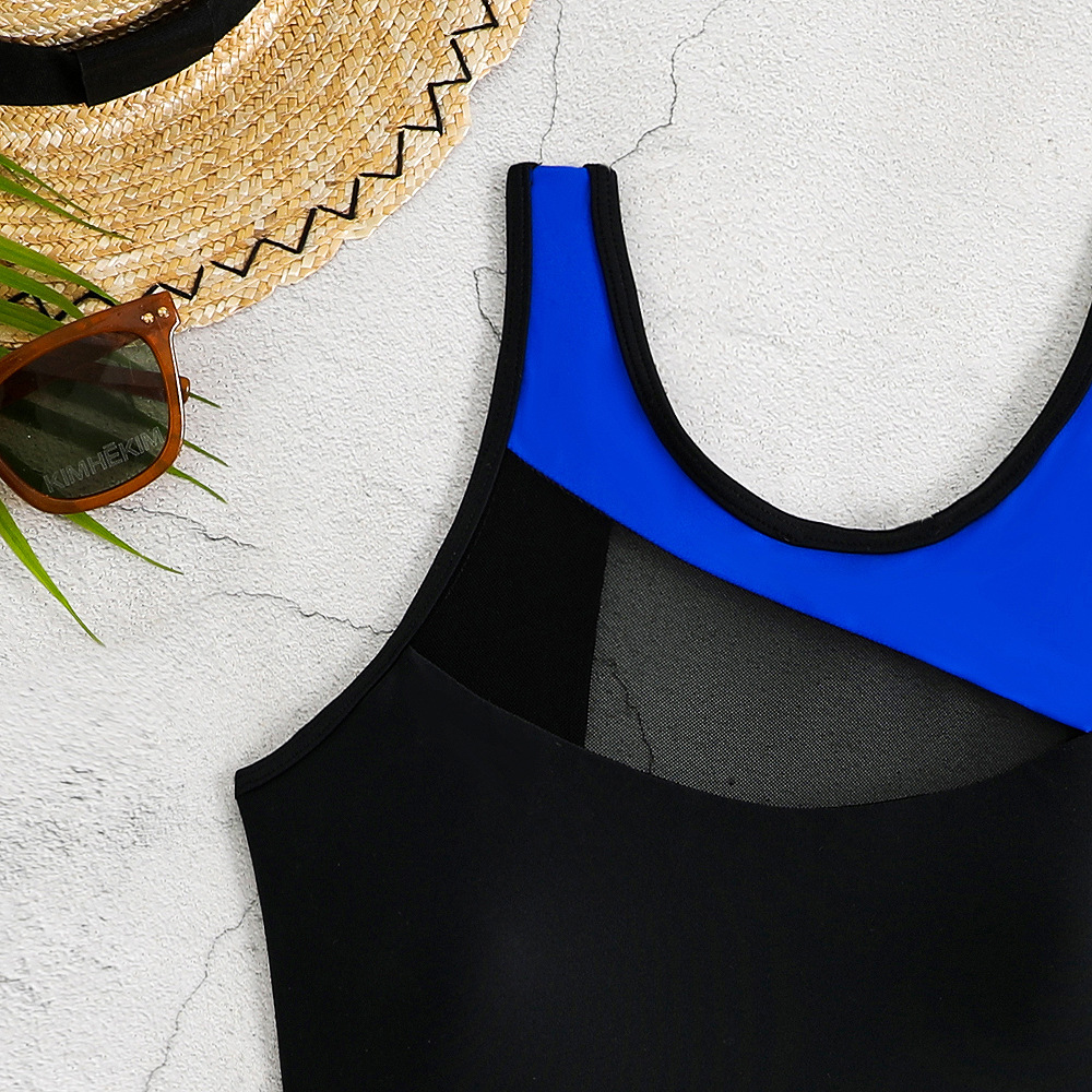 수영복 여성 메쉬 허리 스포츠 경쟁 점프 슈트 솔리드 컬러 스플 라이스 원피스 크로스 보더 유럽과 미국 스타일의 수영복