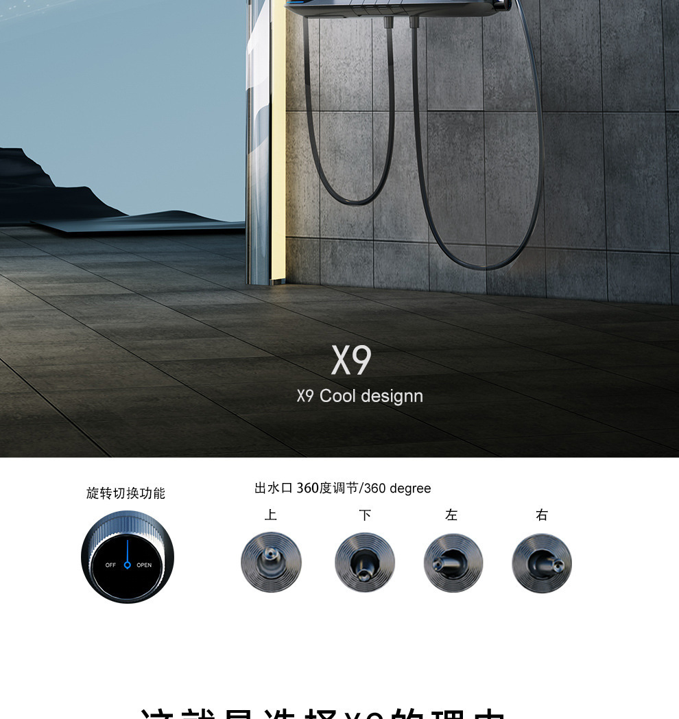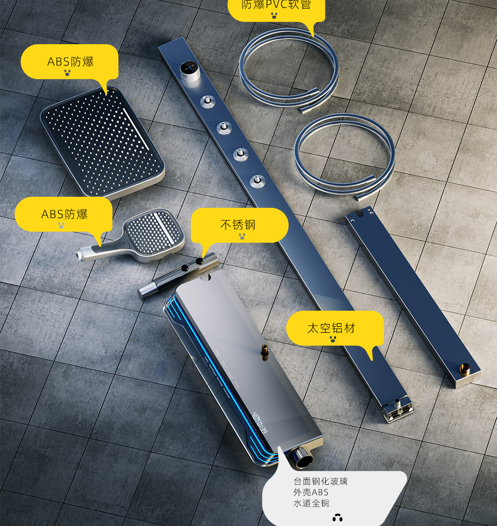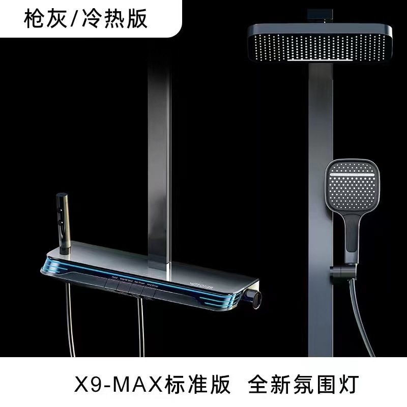 건 그레이 분위기 라이트 샤워 세트 가정용 일정한 온도 디지털 디스플레이 욕실 샤워기 레인 부스터 노즐