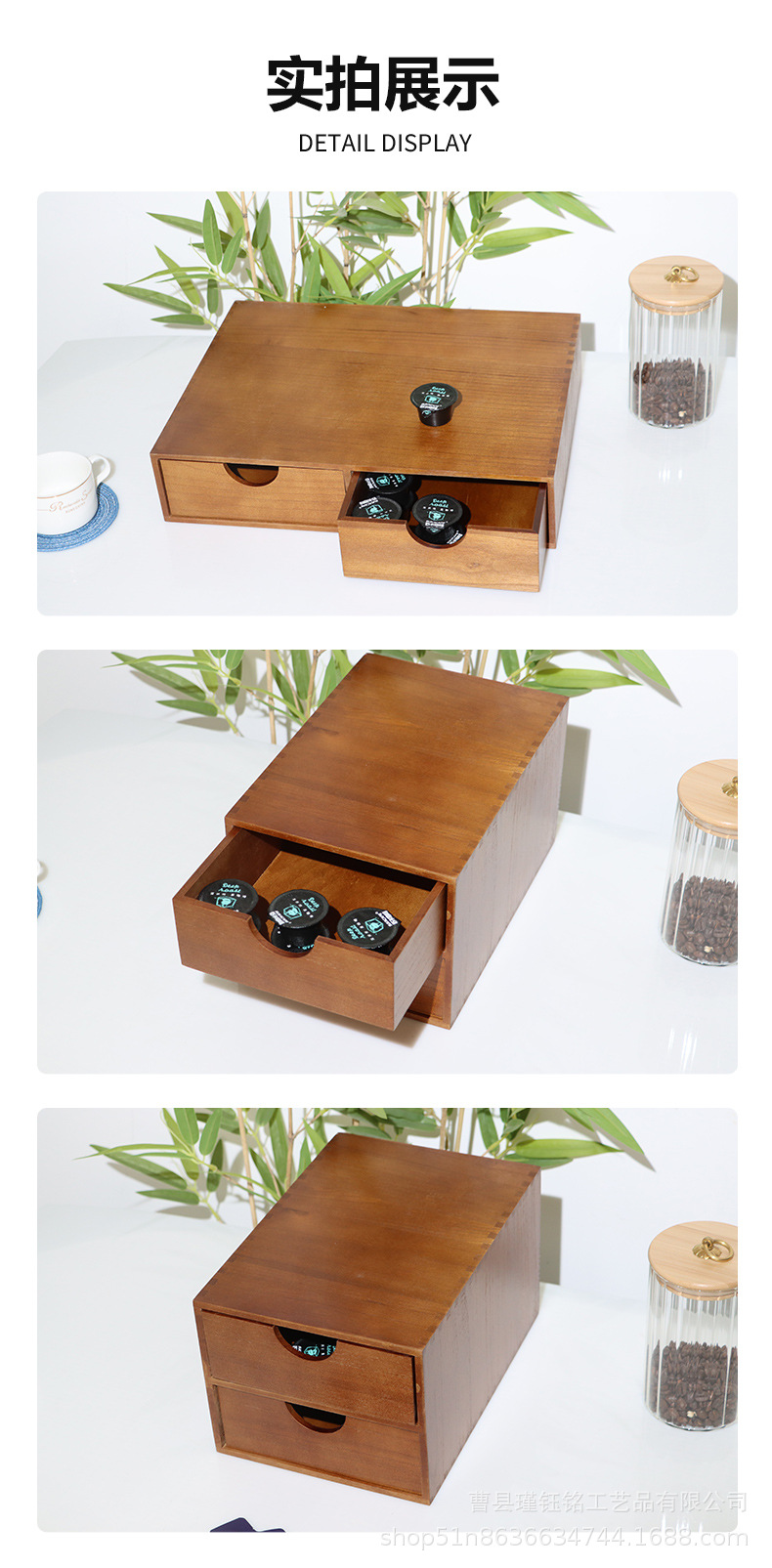 나무 커피 캡슐 저장 상자 서랍 유형 분할 티백 차 세트 저장 랙 가정용 커피 기계베이스 브래킷
