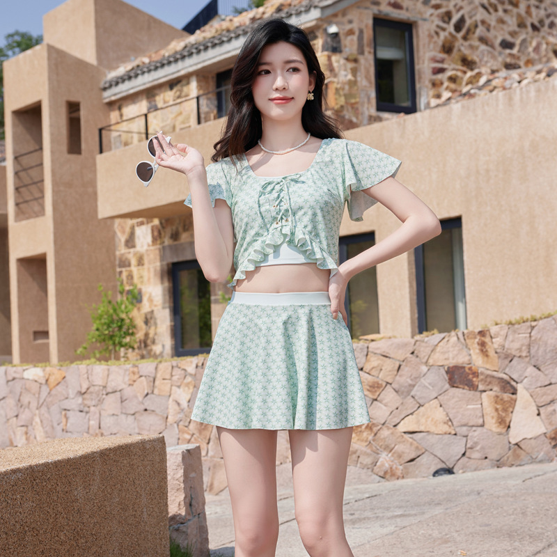 여성용 스플릿 투피스 수영복, 보수적인 꽃무늬 스커트 스타일의 새로운 스타일의 휴가 온천 수영복 제조업체 원피스 드롭 배송