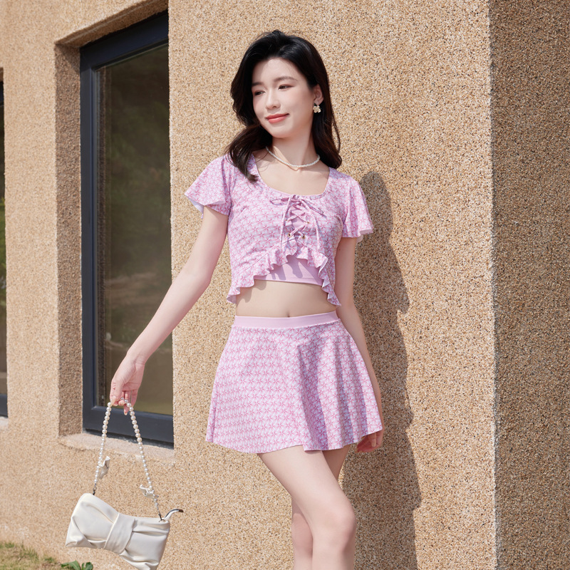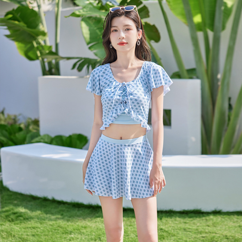 여성용 스플릿 투피스 수영복, 보수적인 꽃무늬 스커트 스타일의 새로운 스타일의 휴가 온천 수영복 제조업체 원피스 드롭 배송스토어 가기