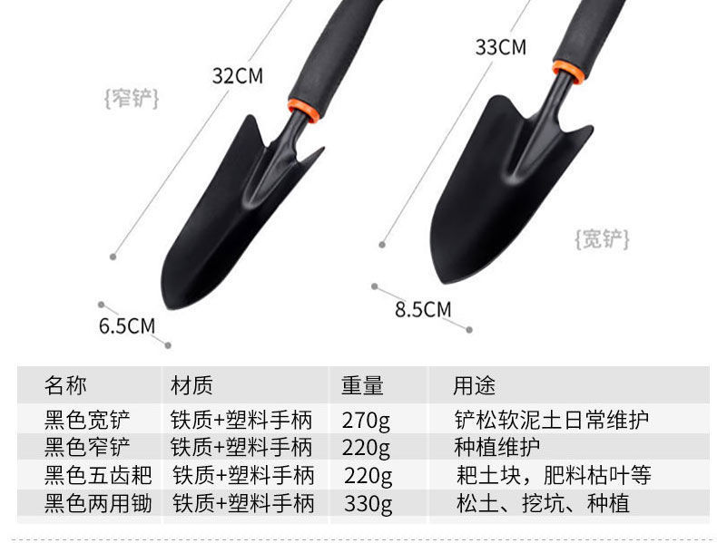 • 3종 세트 [좁은 삽 + 다섯 개의 톱니 갈퀴 + 이중 목적 괭이]
