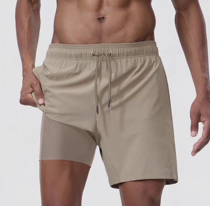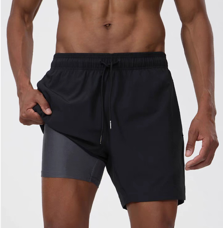 남성용 러닝 피트니스 속건성 바지 스포츠 이중 레이어 캐주얼 수영 비치 쿼터 팬츠 이중 레이어 안감