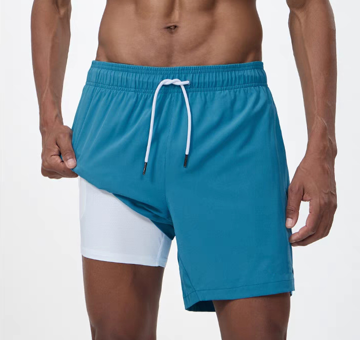 남성용 러닝 피트니스 속건성 바지 스포츠 이중 레이어 캐주얼 수영 비치 쿼터 팬츠 이중 레이어 안감스토어 가기