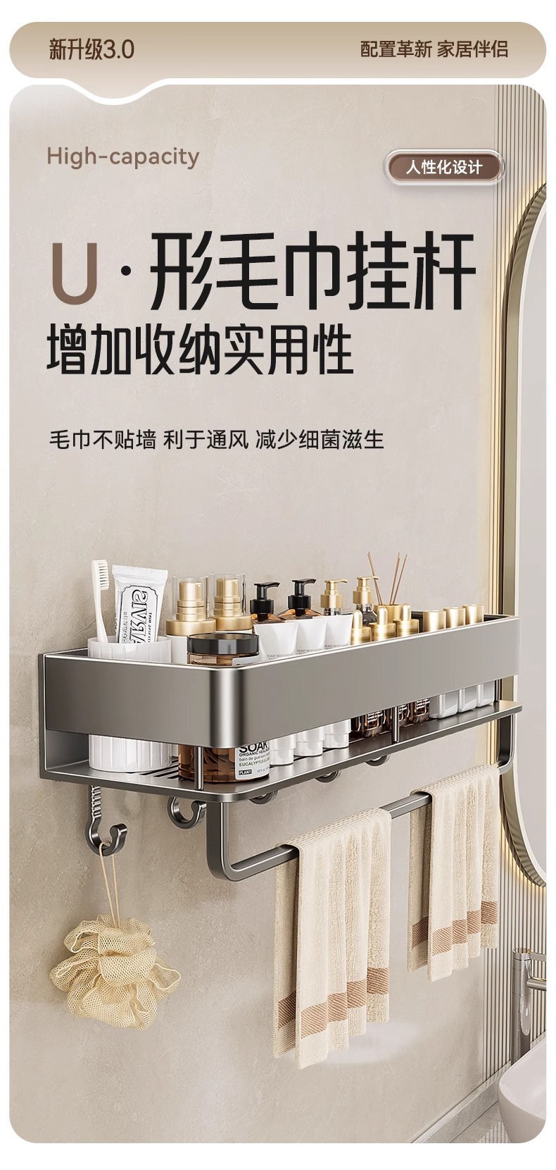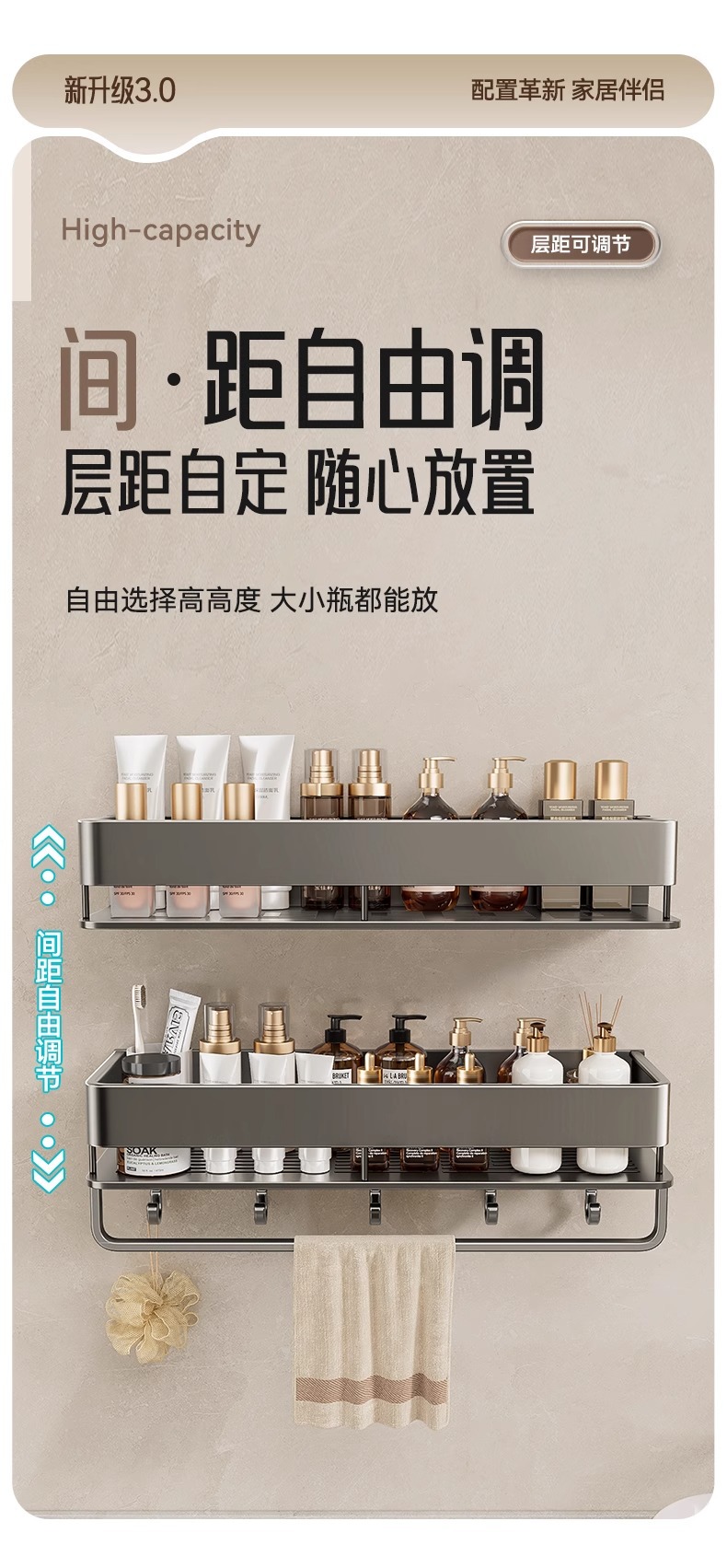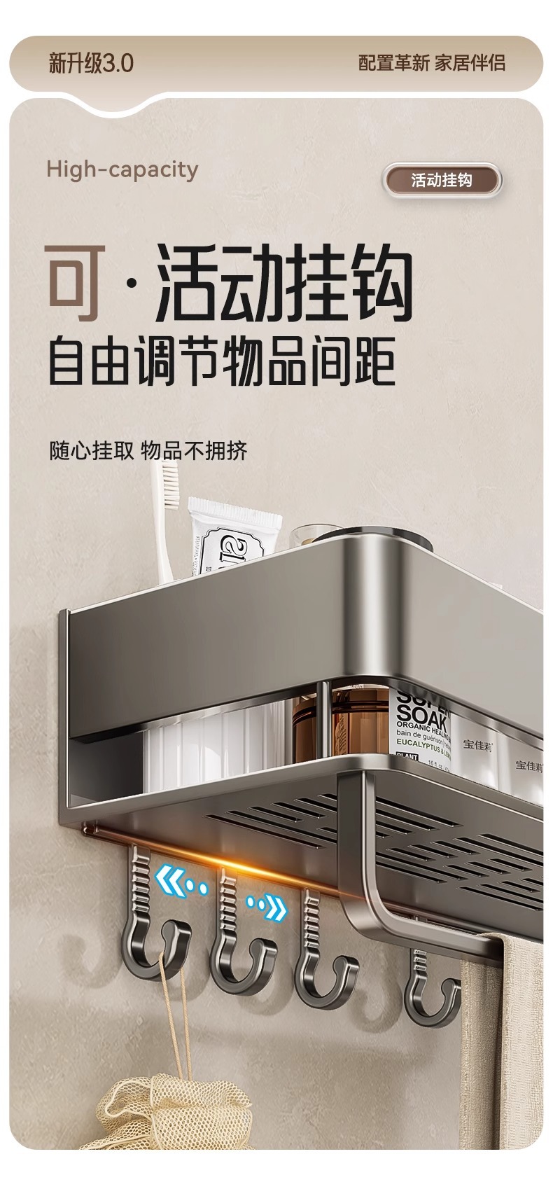 욕실 수납 선반 공간 알루미늄 벽걸이형 욕실 벽걸이형 펀치 없는 욕실 화장품 수납 선반스토어 가기