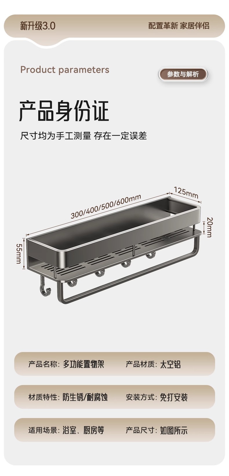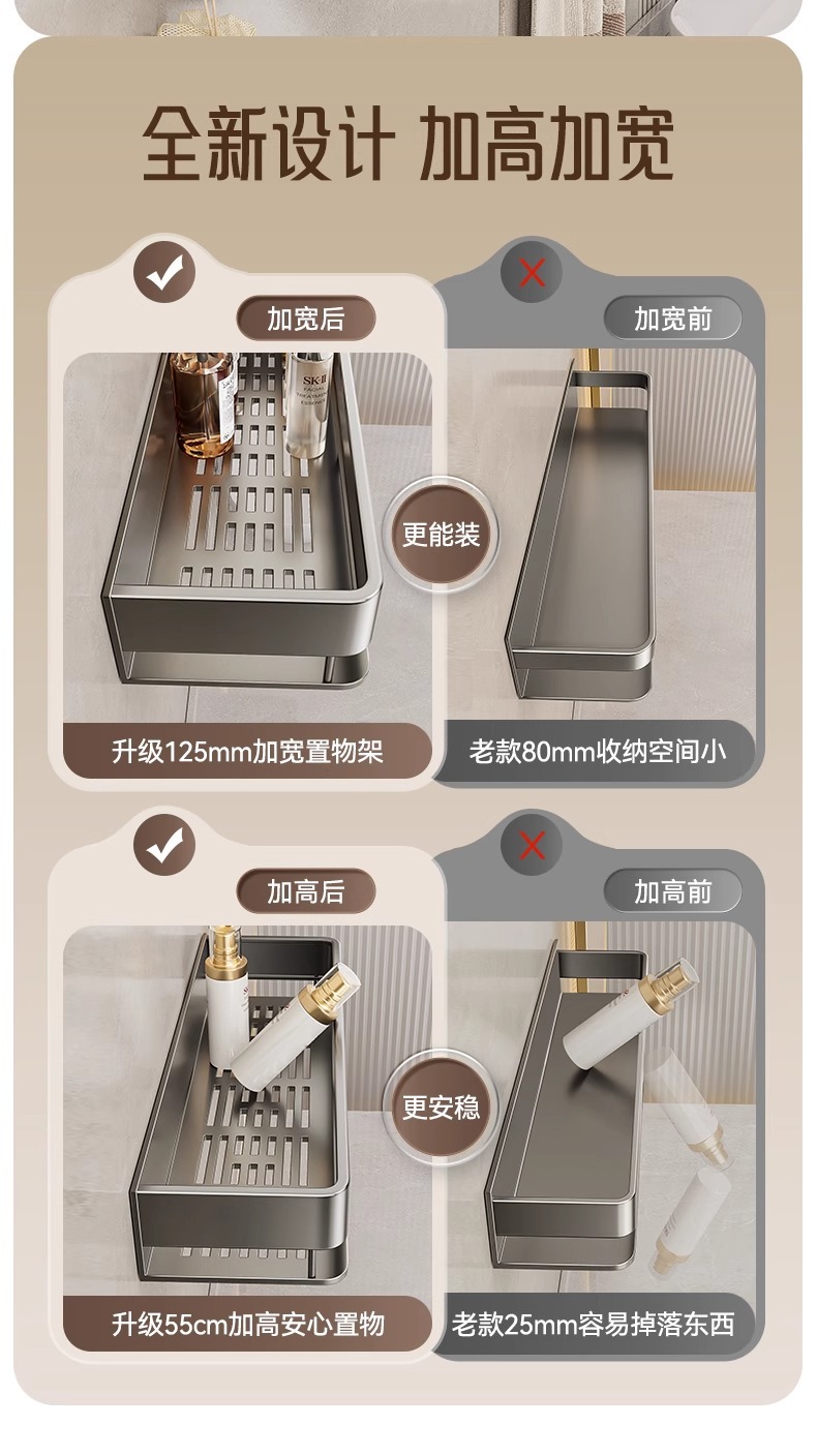 욕실 수납 선반 공간 알루미늄 벽걸이형 욕실 벽걸이형 펀치 없는 욕실 화장품 수납 선반