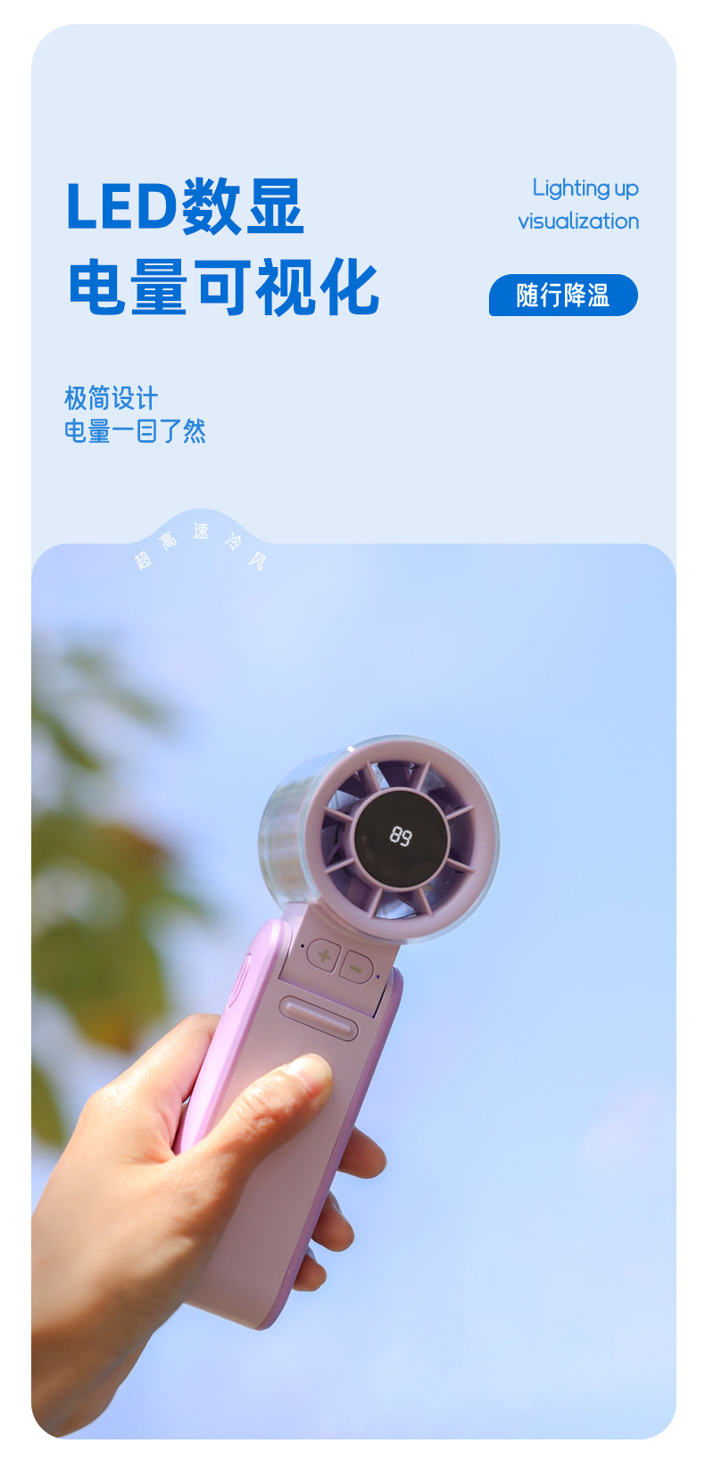 새로운 터보 고속 야외 접이식 휴대용 USB 디지털 디스플레이 반도체 냉동 교수형 목 휴대용 작은 팬스토어 가기