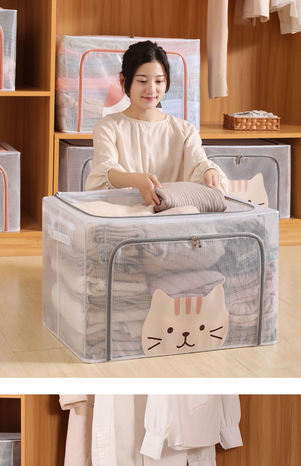 옷 보관 상자 가정용 옷장 의류 이불 보관 상자 접이식 대용량 방수 투명 보관 바구니스토어 가기