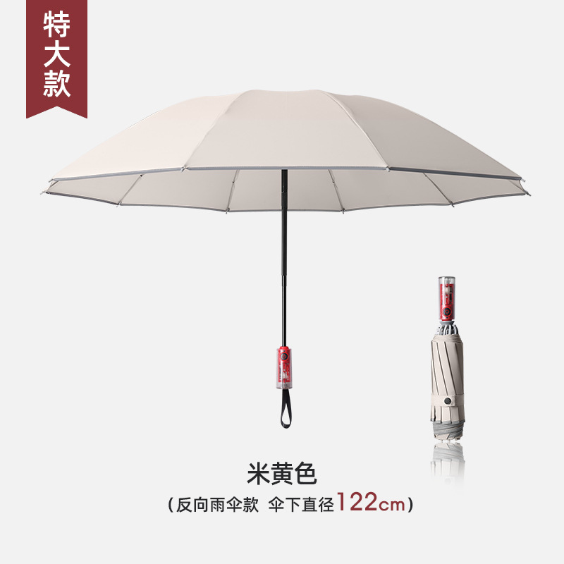 • 베이지 리버스 [10 알루미늄 합금 리브 + 안전 및 반동 방지] 새로 업그레이드된 기계식 핸들, 초대형 125CM
