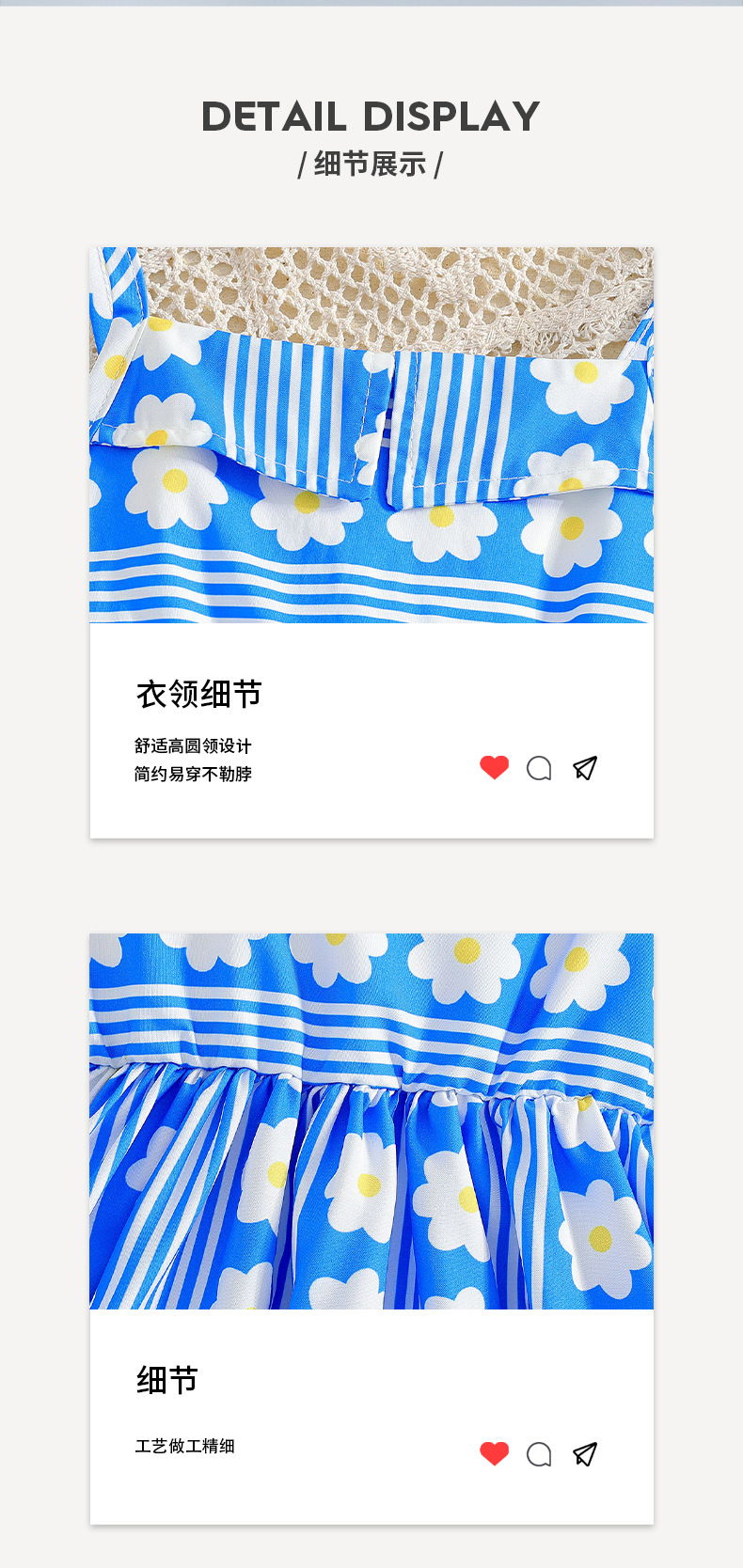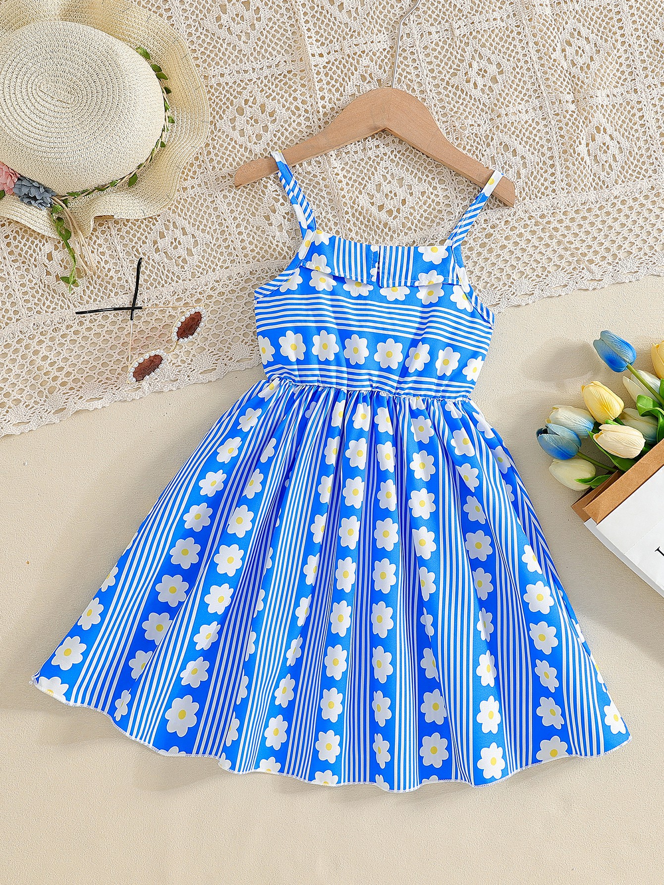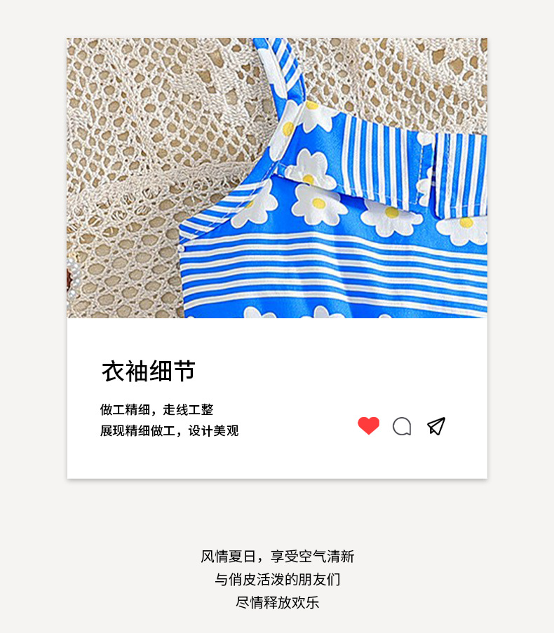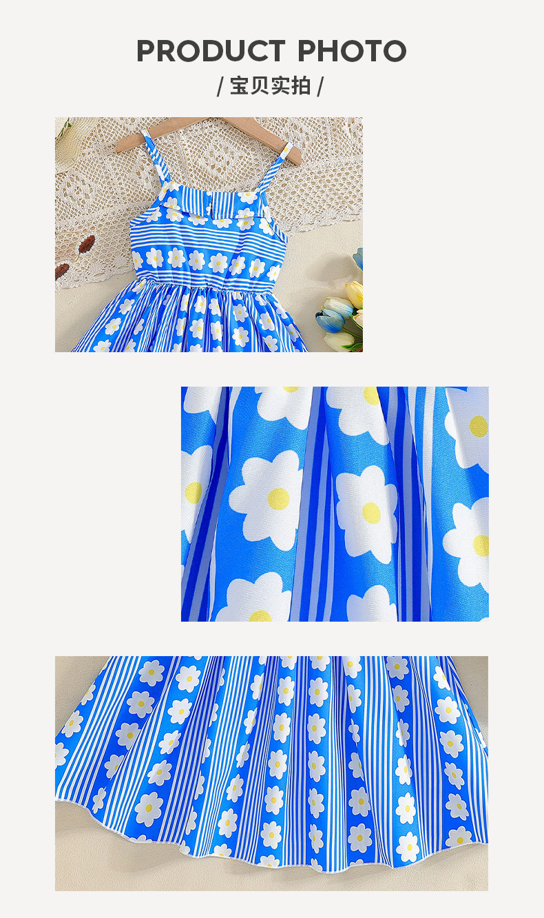 소녀 대외 무역 여름 슬링 원피스 블루 스트라이프 꽃 패턴 캐주얼 프랑스 스타일 대형 어린이 원피스스토어 가기