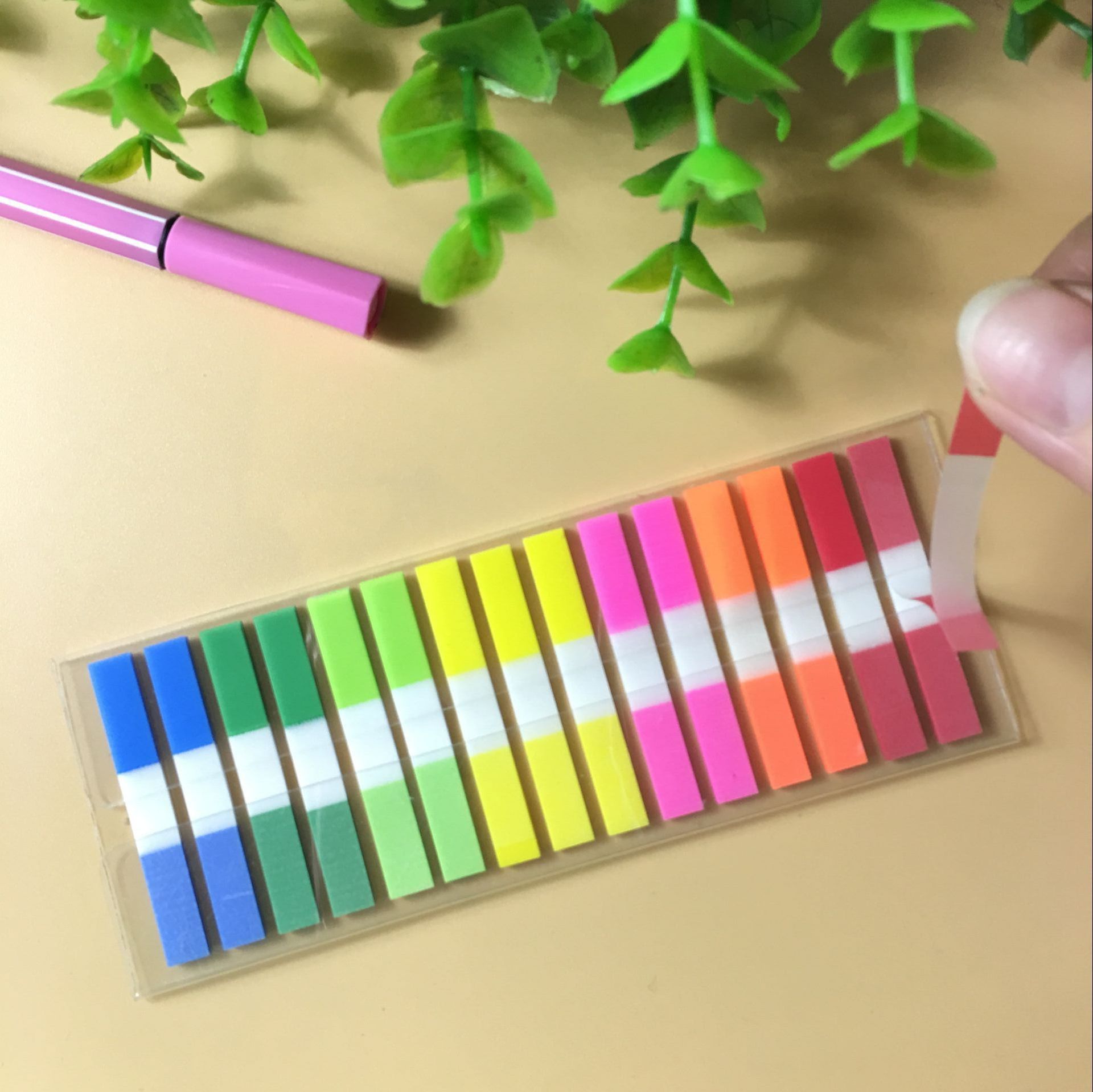 형광 투명 색인 스티커 메모 자체 접착 메모 용지 사무실 손으로 찢을 수있는 분류 스티커 학생 마킹 라벨 스트립