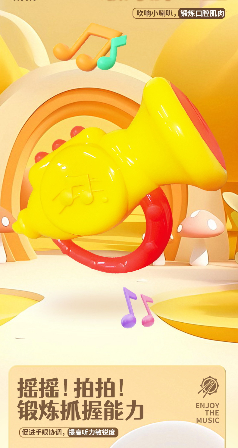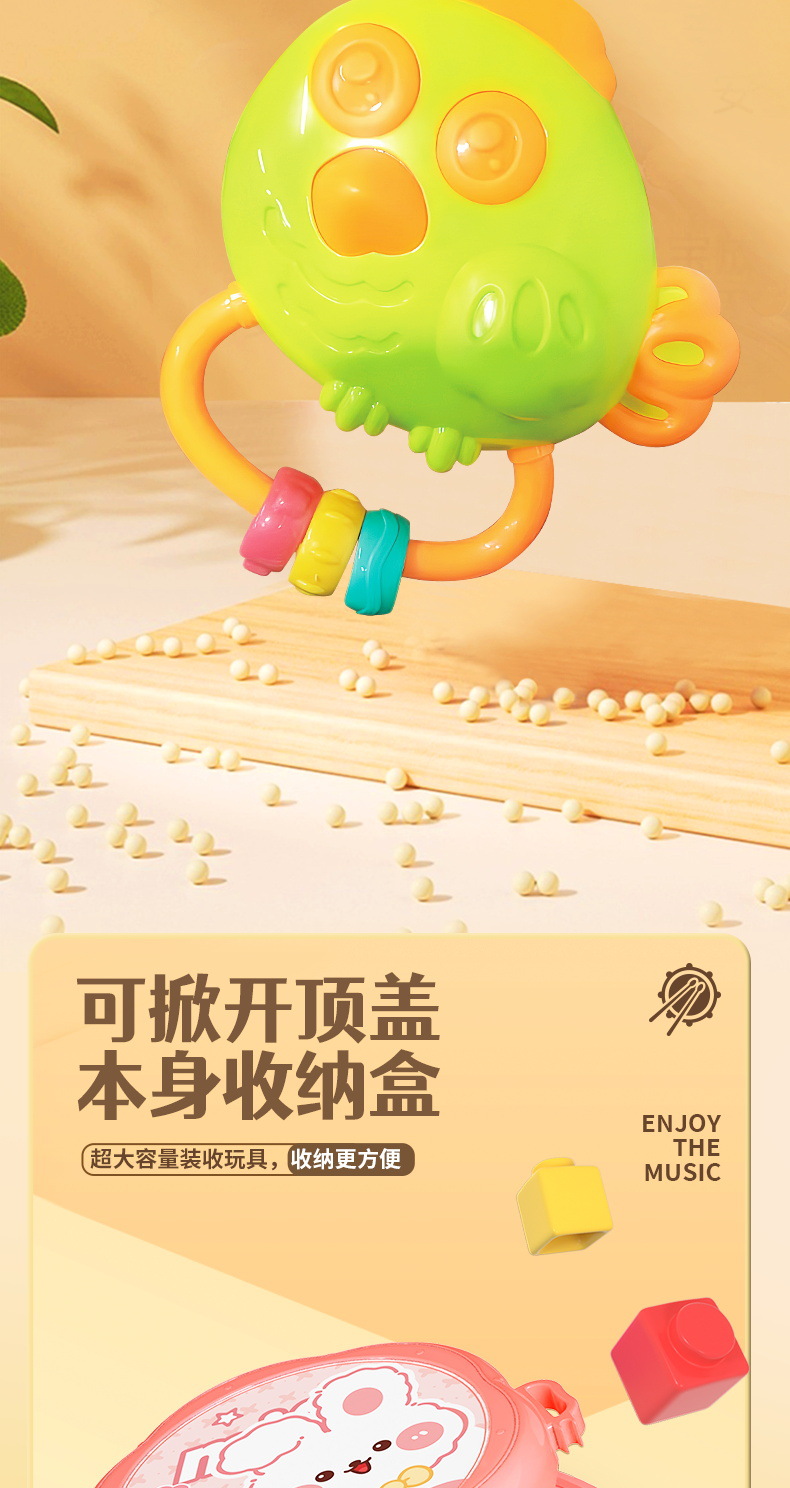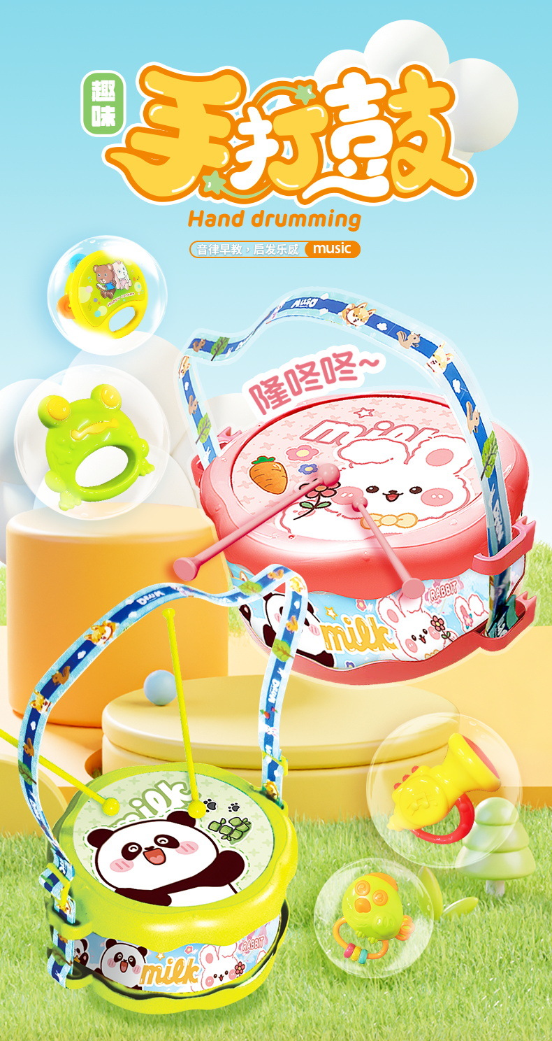 아기 장난감 퍼즐 조기 교육 어린이 장난감 딸랑이 손 드럼 뿔 아기 음악 드럼 공장 도매스토어 가기