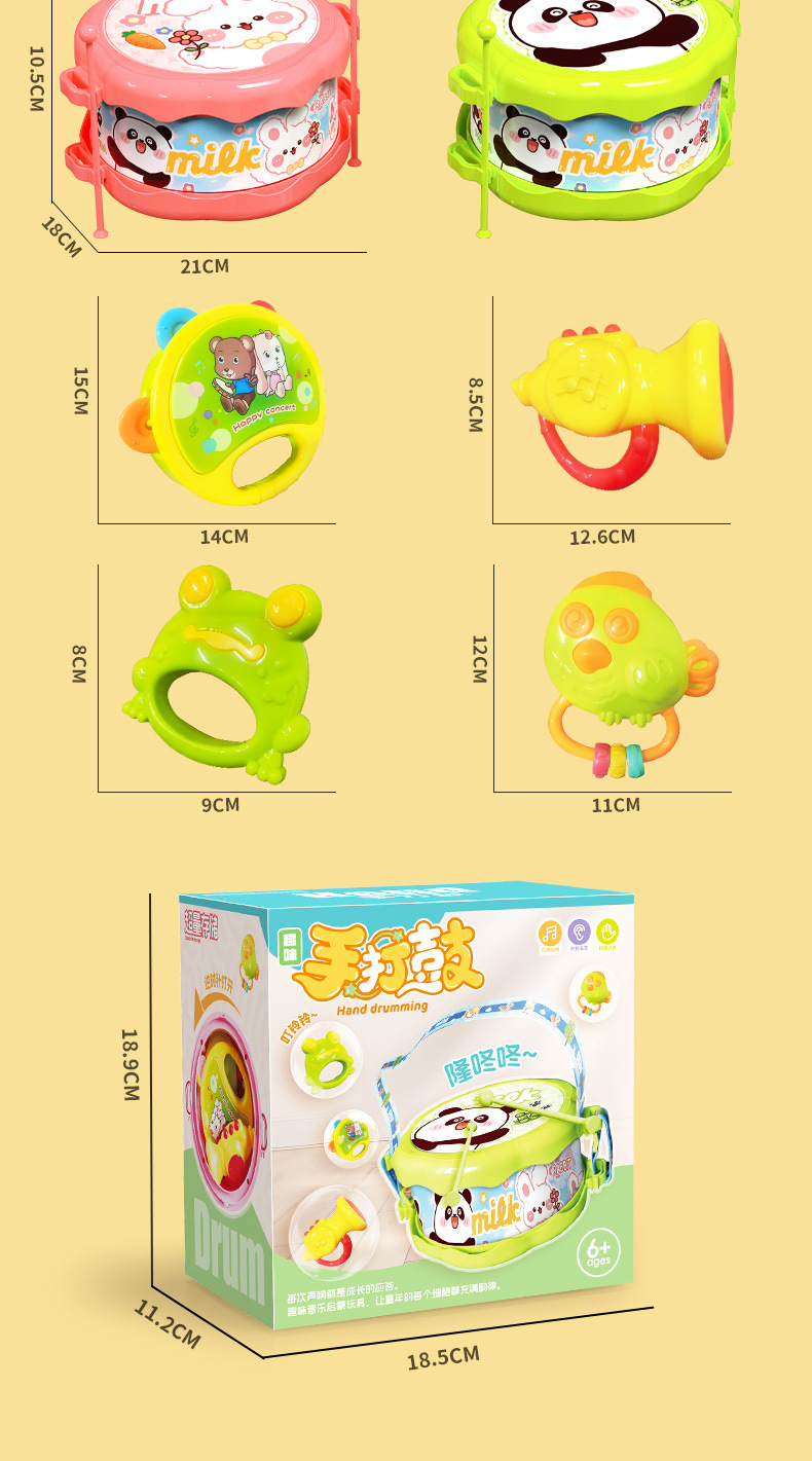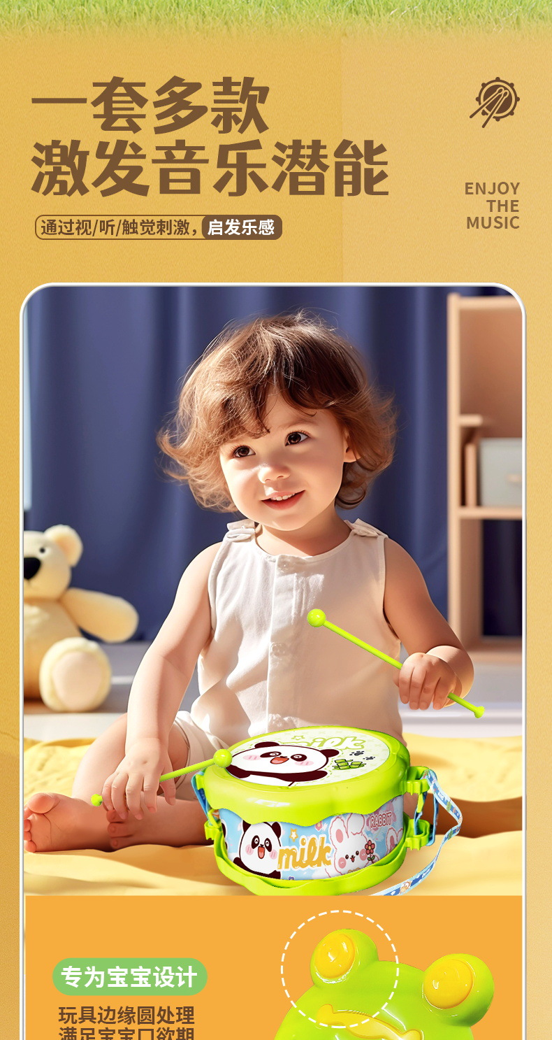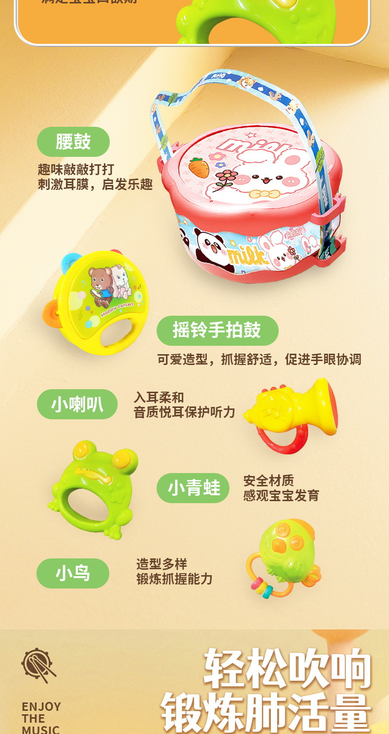 아기 장난감 퍼즐 조기 교육 어린이 장난감 딸랑이 손 드럼 뿔 아기 음악 드럼 공장 도매스토어 가기