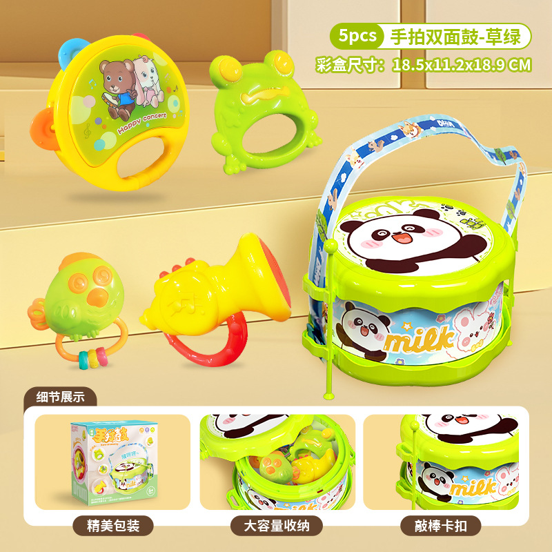 • [그린~5종세트] 양면드럼 + 핸드탬버린 + 재미있는 개구리 + 트럼펫 + 새