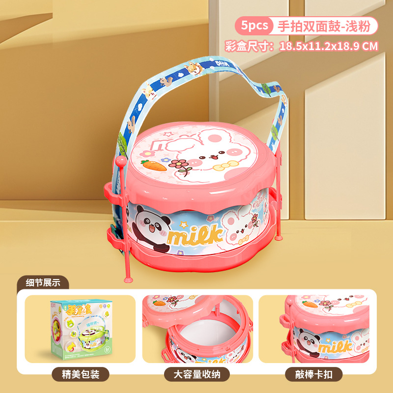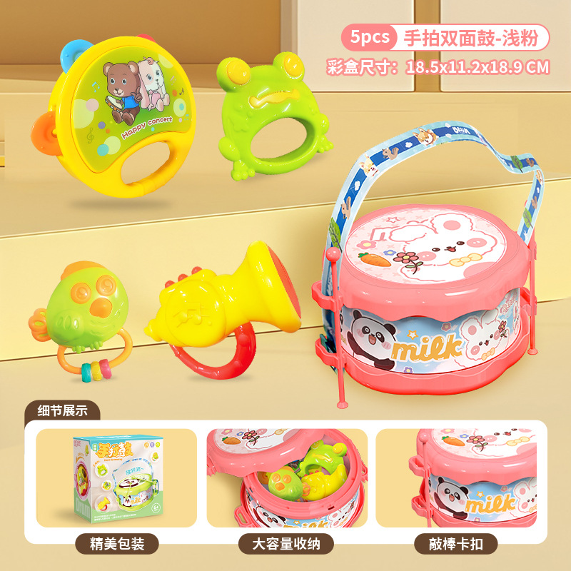• [핑크~5종세트] 양면드럼 + 핸드탬버린 + 재미있는 개구리 + 트럼펫 + 새