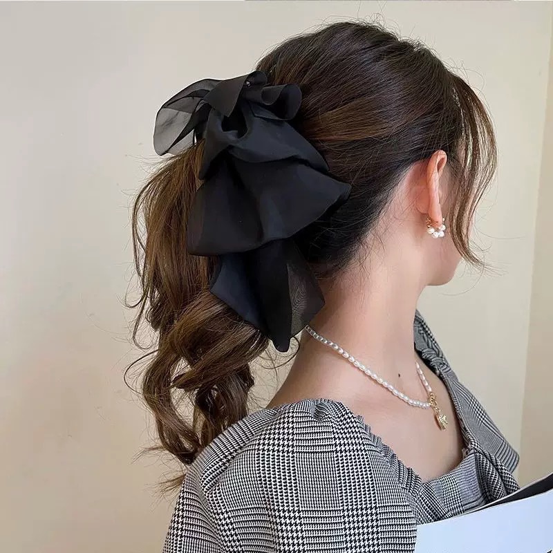 쉬폰 대형 활 우아한 머리핀 한국 간단한 패션 슈퍼 요정 봄 클립 2025 여름 새로운 헤어 액세서리