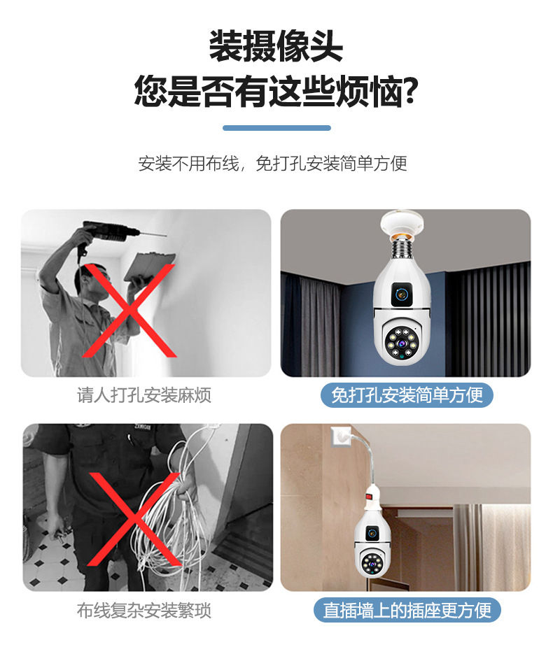 전구 카메라 무선 와이파이 감시 카메라 360 모바일 추적 경보 2 백만 국경 카메라스토어 가기
