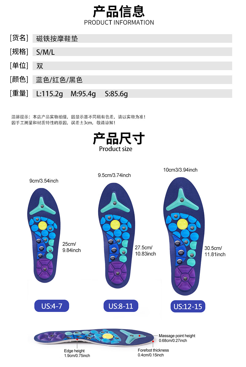 아마존 새로운 자기 마사지 안창 발 자기 치료 밑창 안락 남성 및 여성 절단 가능한 땀 흡수 통기성 깔창