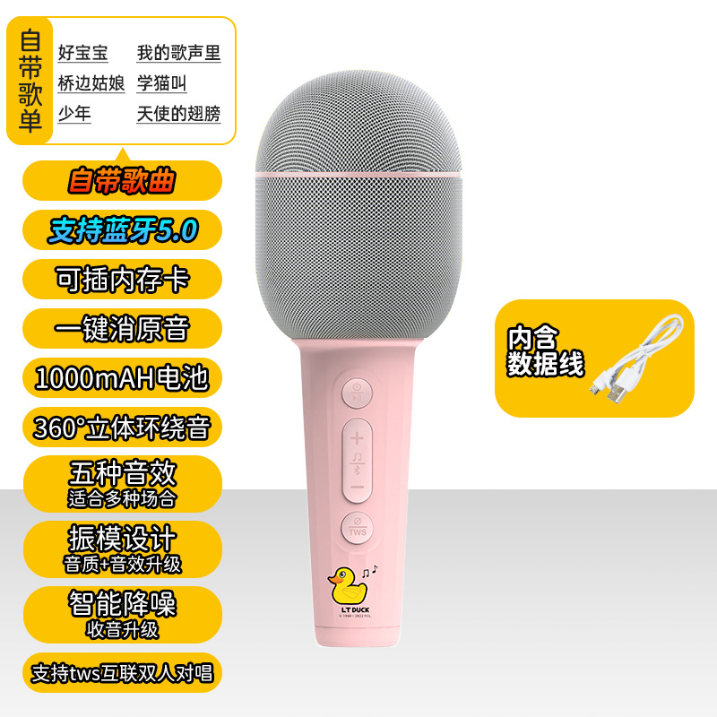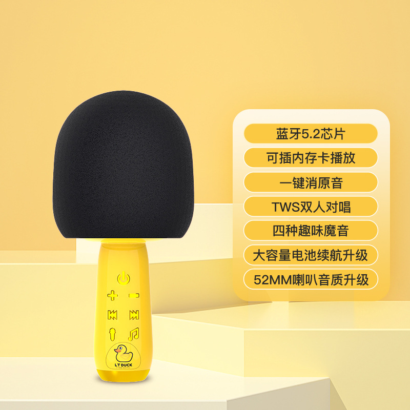 LT.DUCK 작은 노란색 오리 만화 재미있는 마이크 마이크 오디오 통합 무선 특수 홈 핸드 헬드 장난감스토어 가기