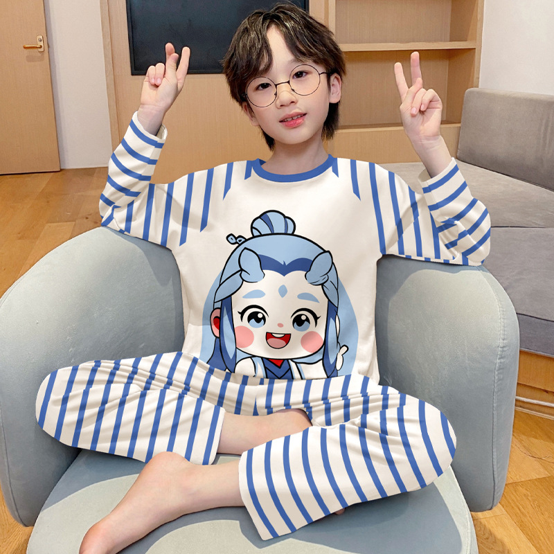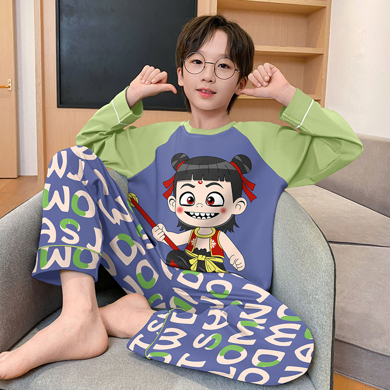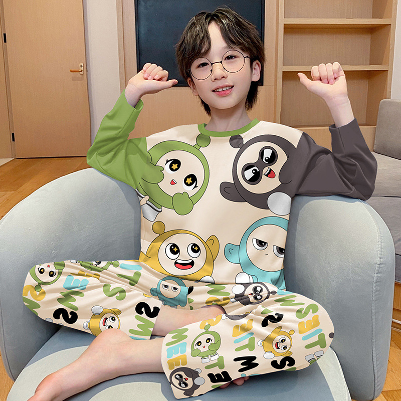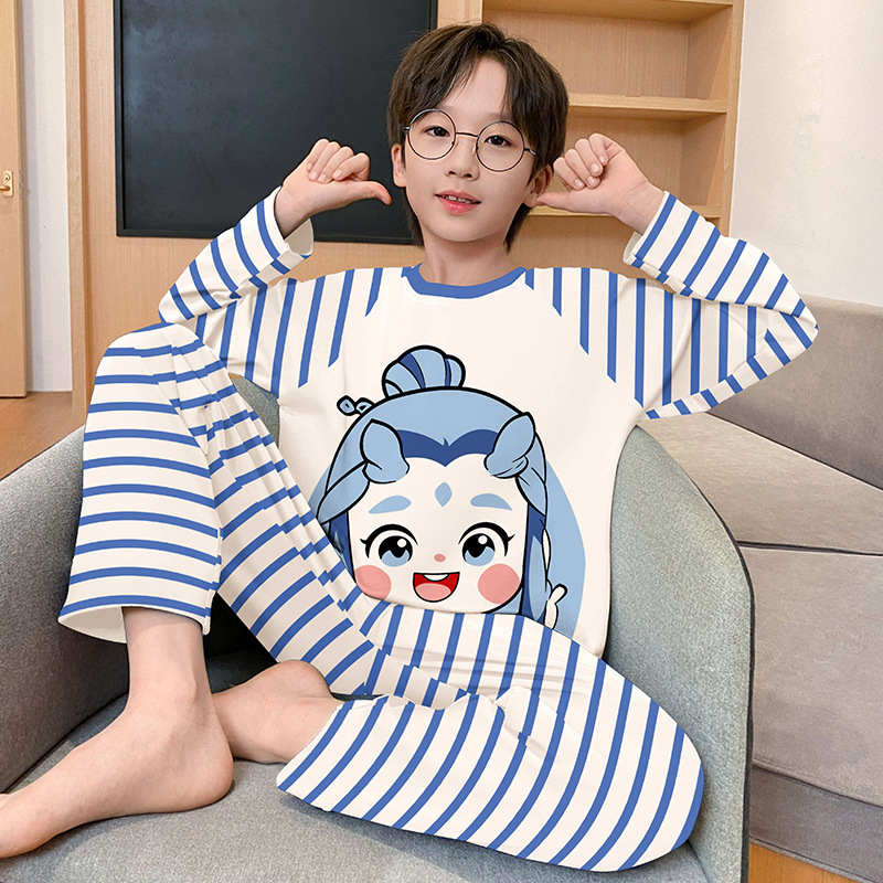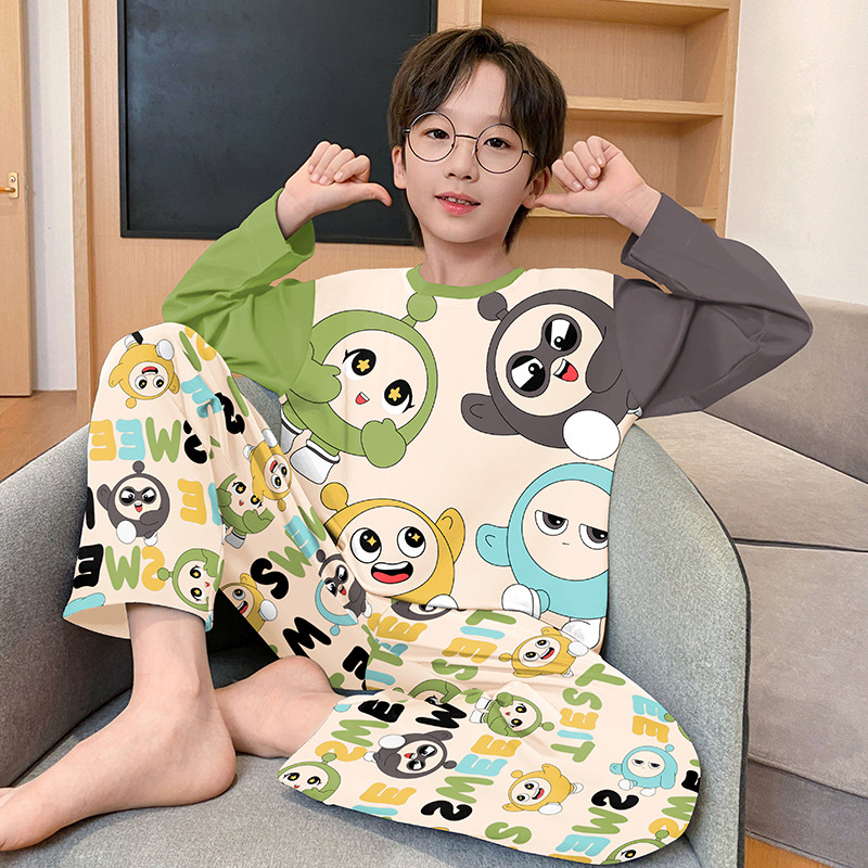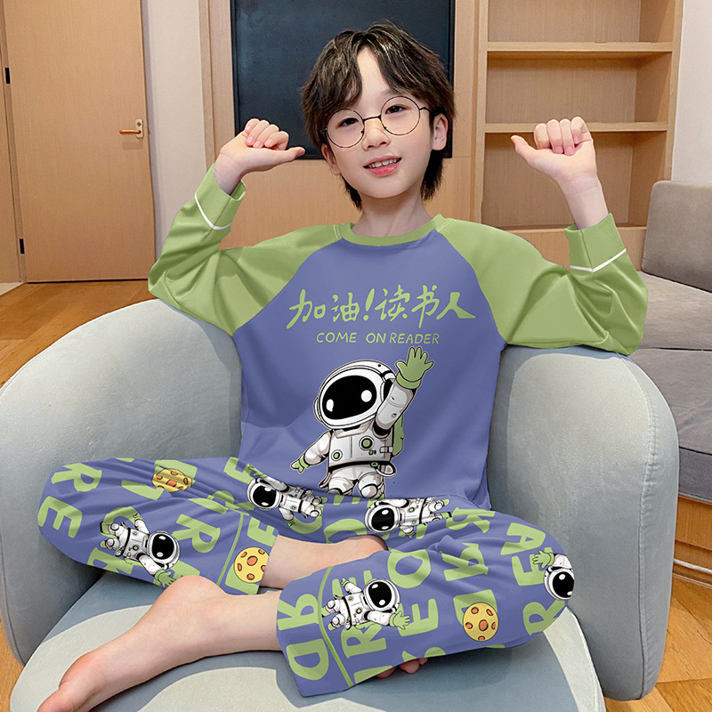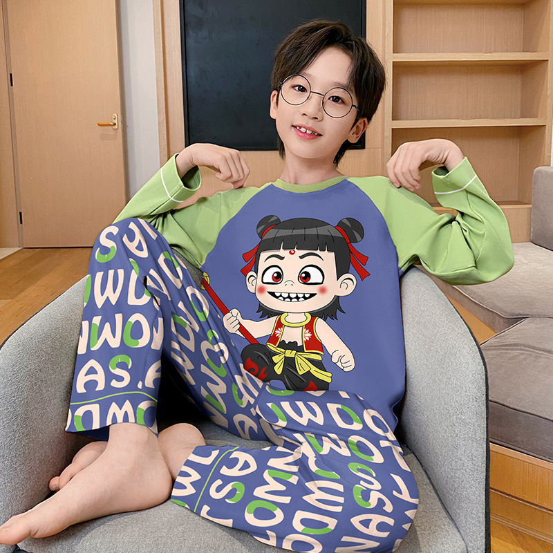 소년과 어린이를위한 잠옷 봄과 가을 만화 긴팔 2025 여름 새 소년 중대형 어린이 면화 가정복스토어 가기