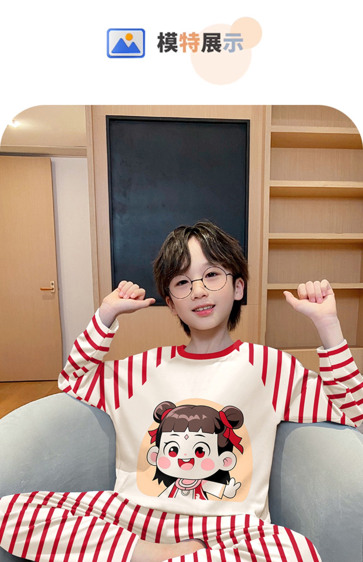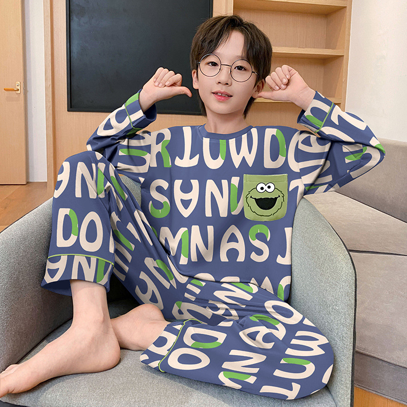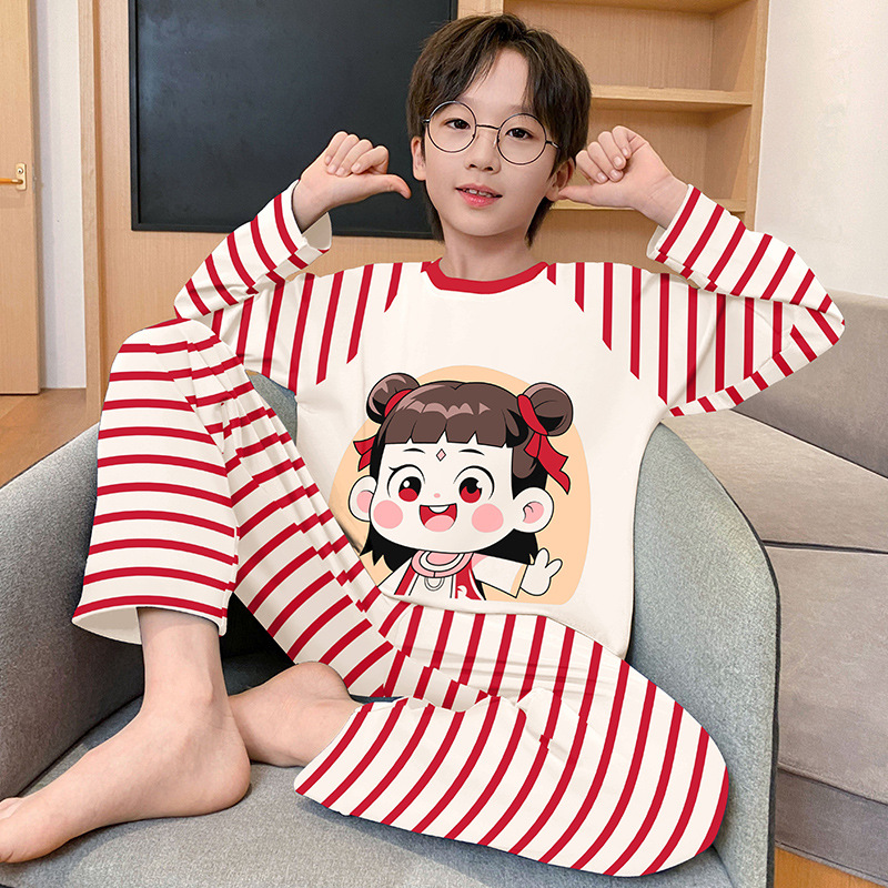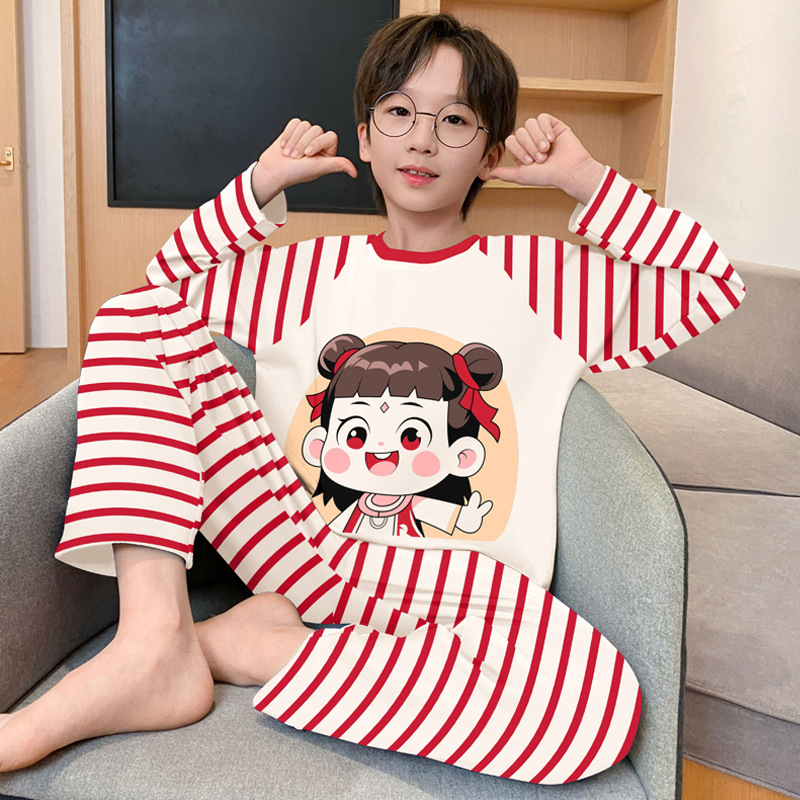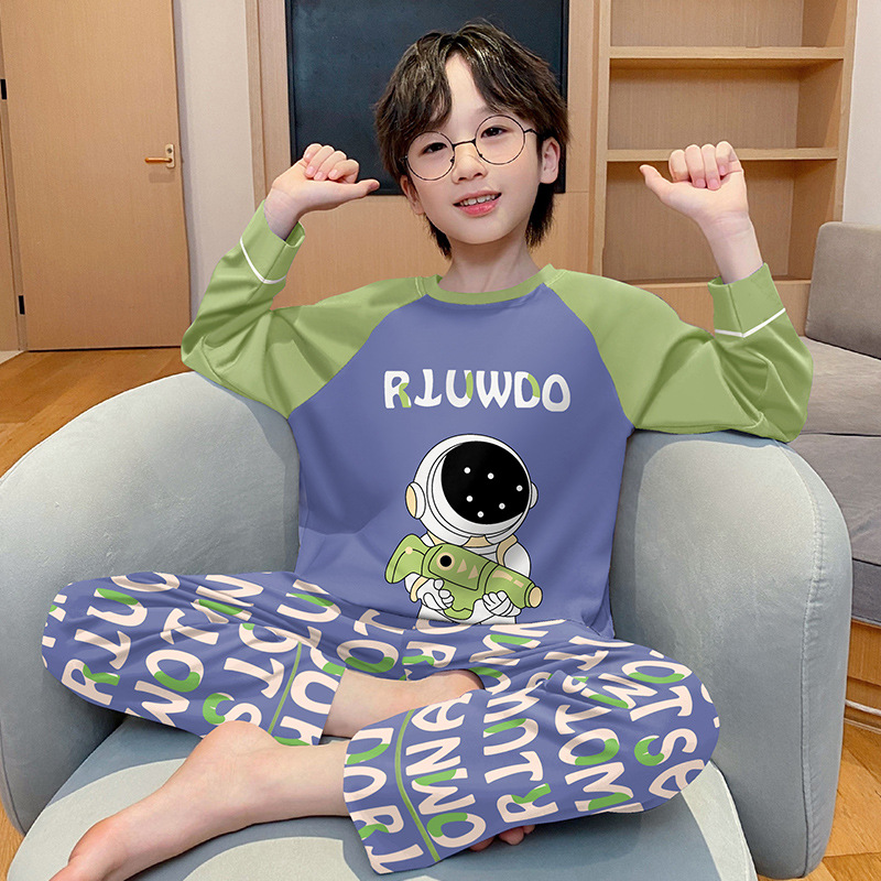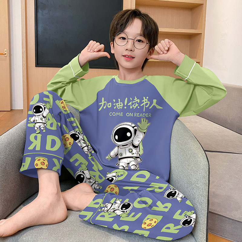 소년과 어린이를위한 잠옷 봄과 가을 만화 긴팔 2025 여름 새 소년 중대형 어린이 면화 가정복스토어 가기