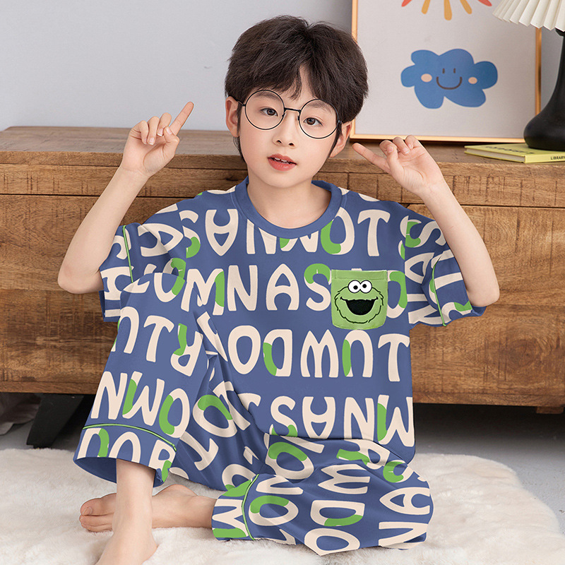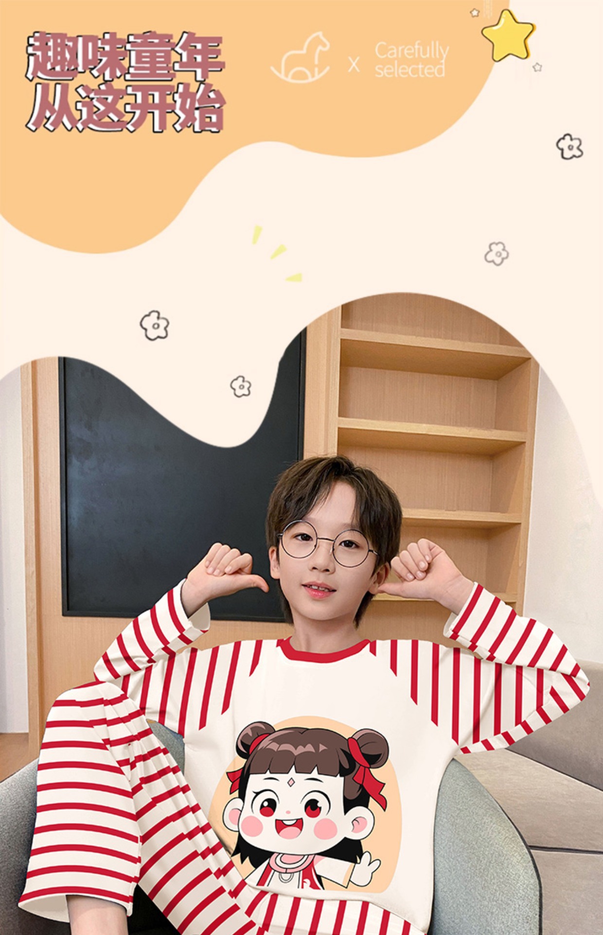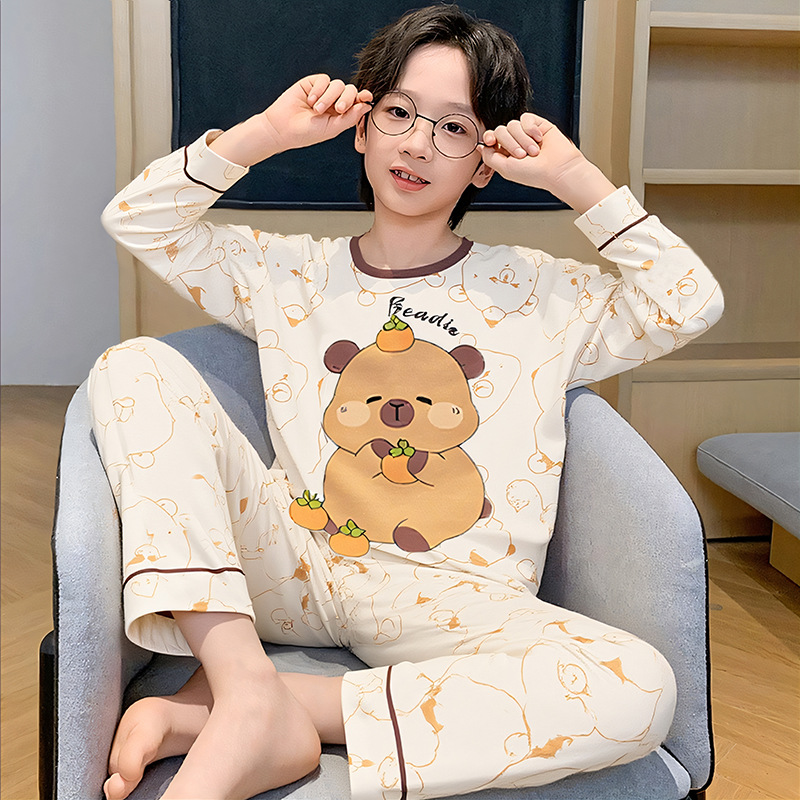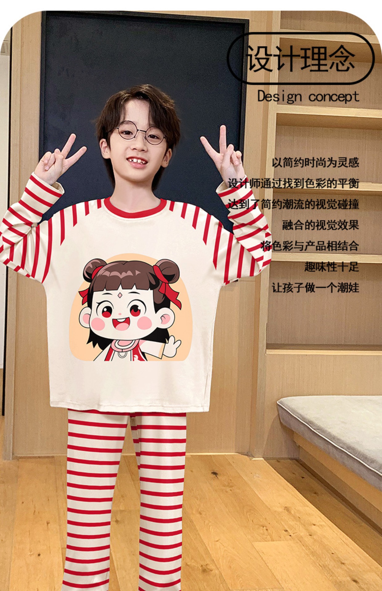 소년과 어린이를위한 잠옷 봄과 가을 만화 긴팔 2025 여름 새 소년 중대형 어린이 면화 가정복스토어 가기