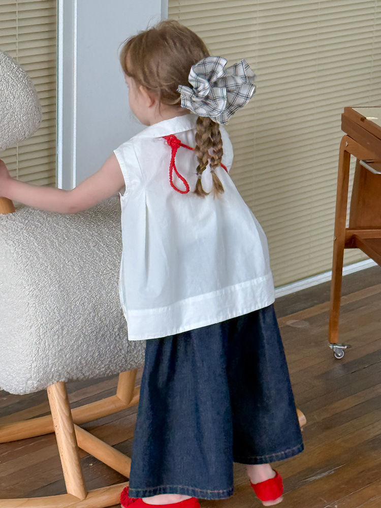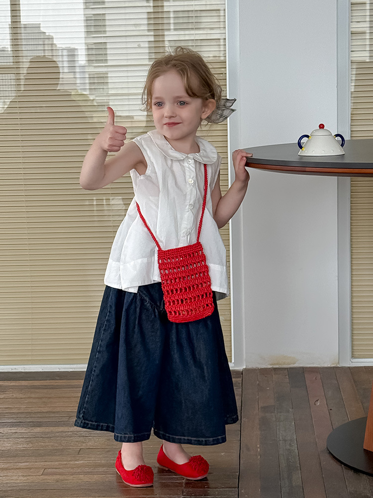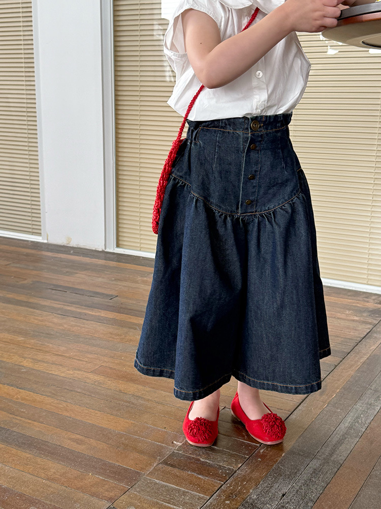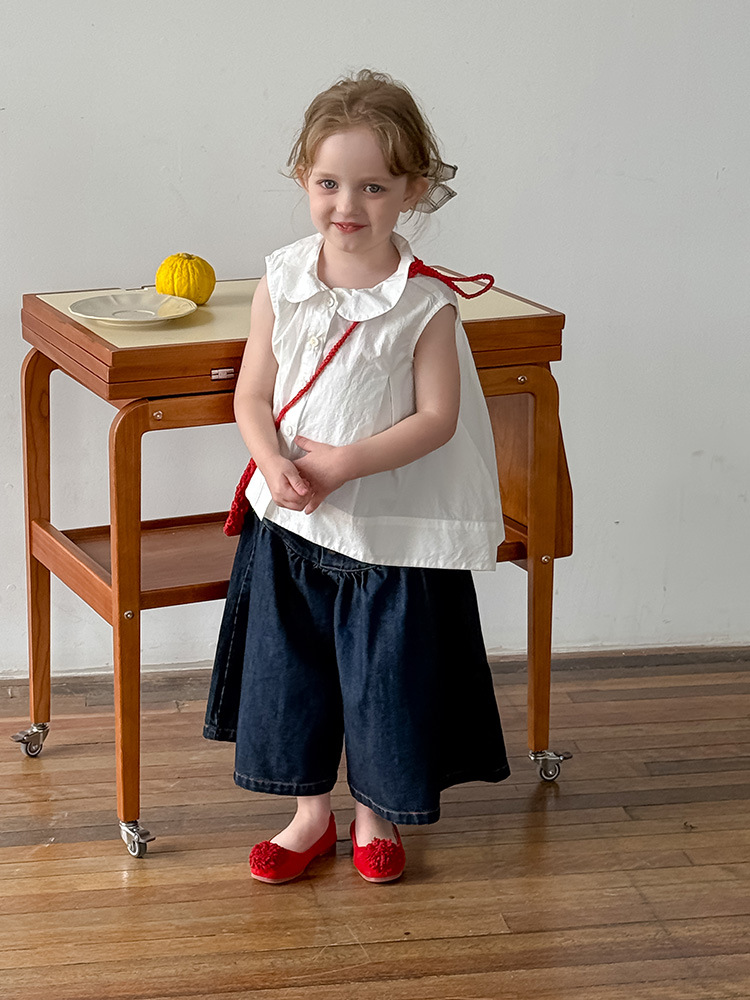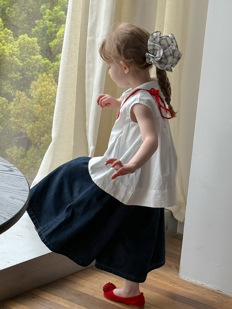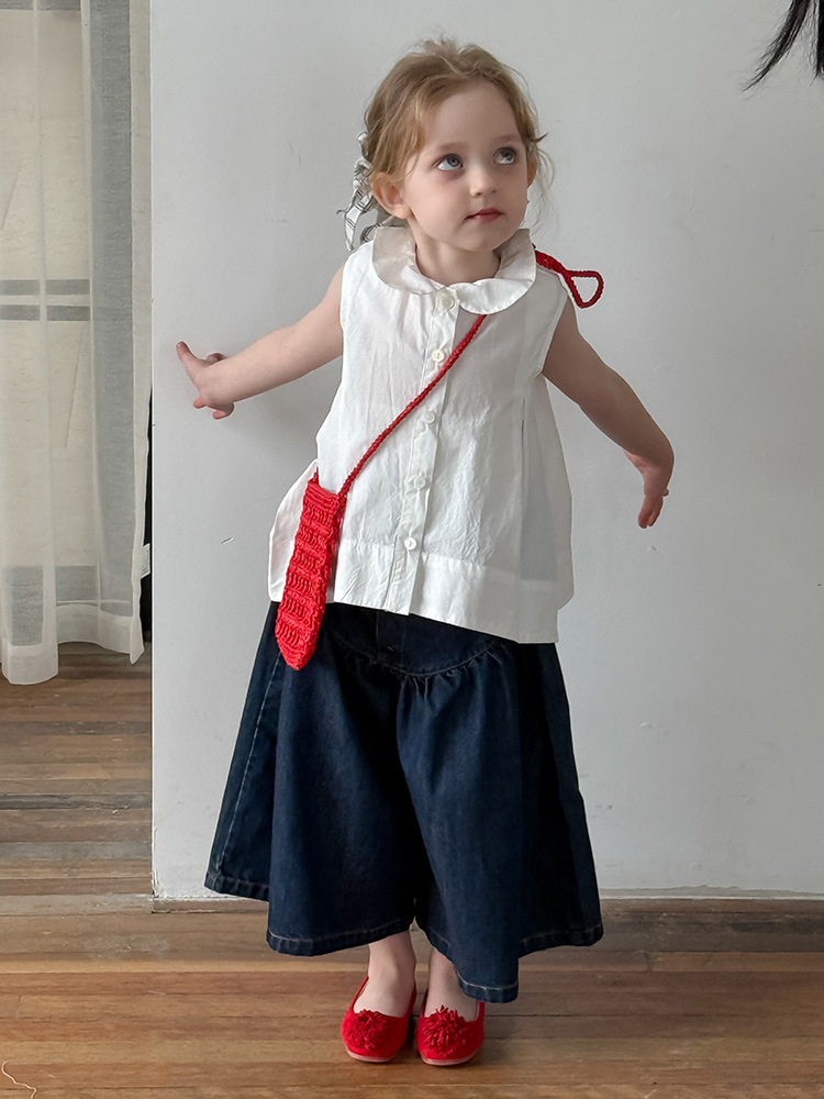 어린이 높은 허리 데님 Culottes 2025 여름 새 한국 여자 잘 맞는 데님 자른 바지