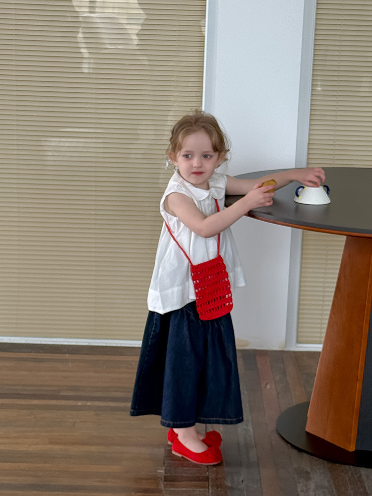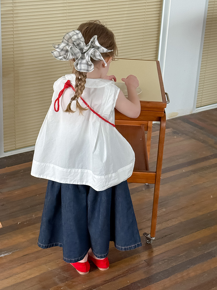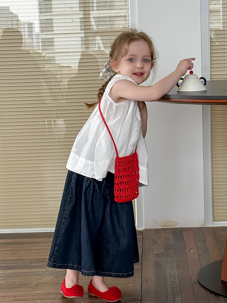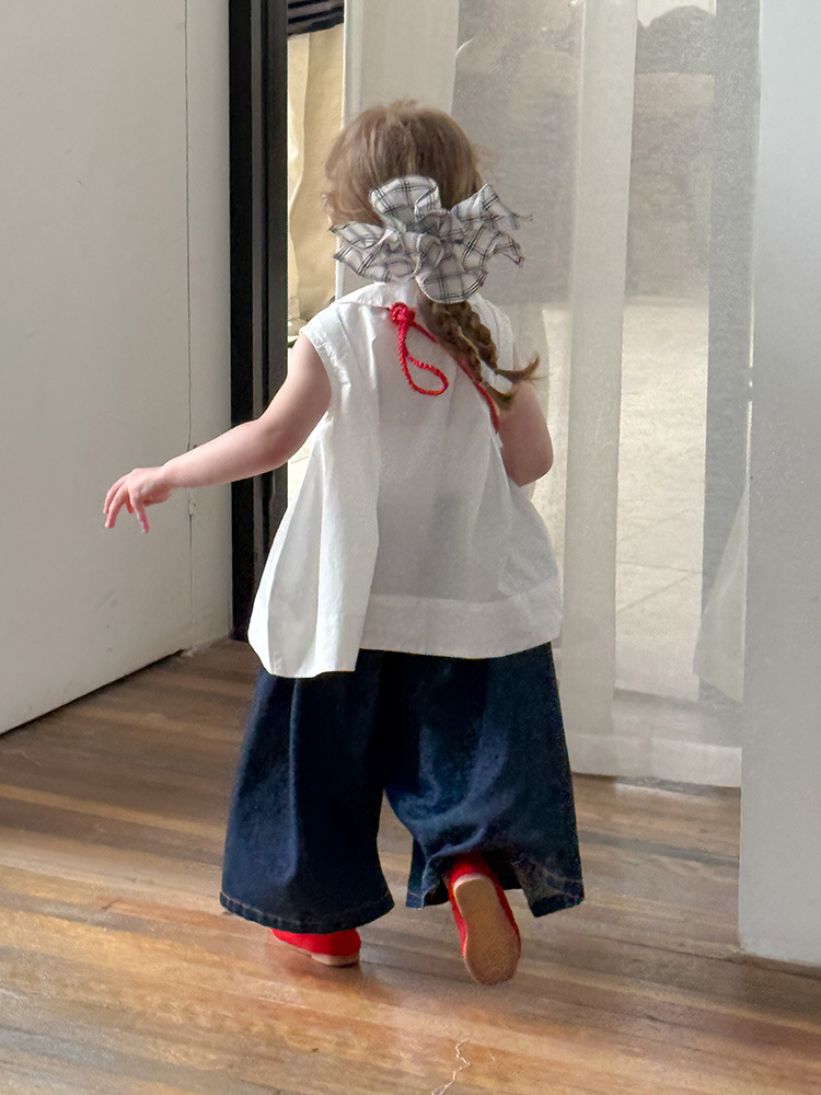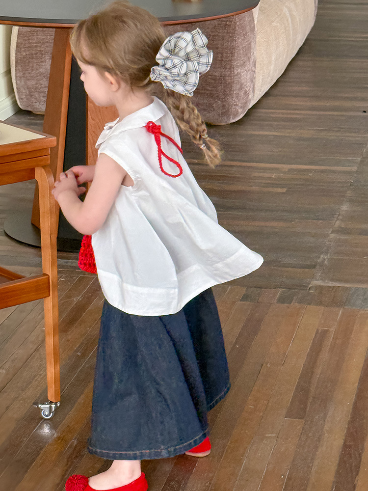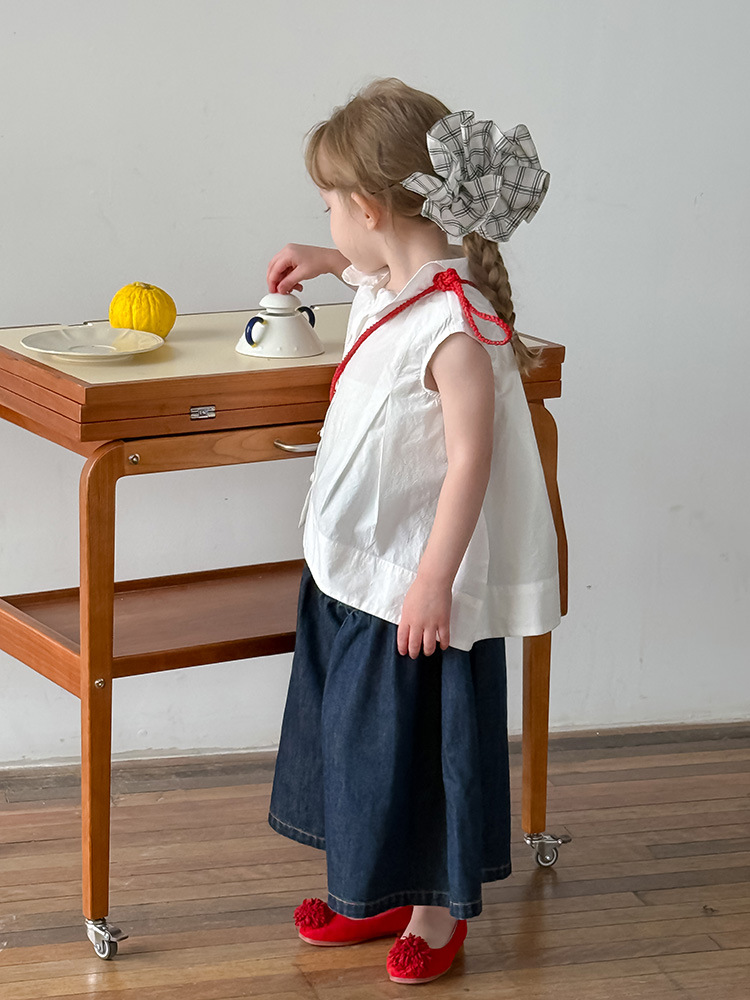어린이 높은 허리 데님 Culottes 2025 여름 새 한국 여자 잘 맞는 데님 자른 바지