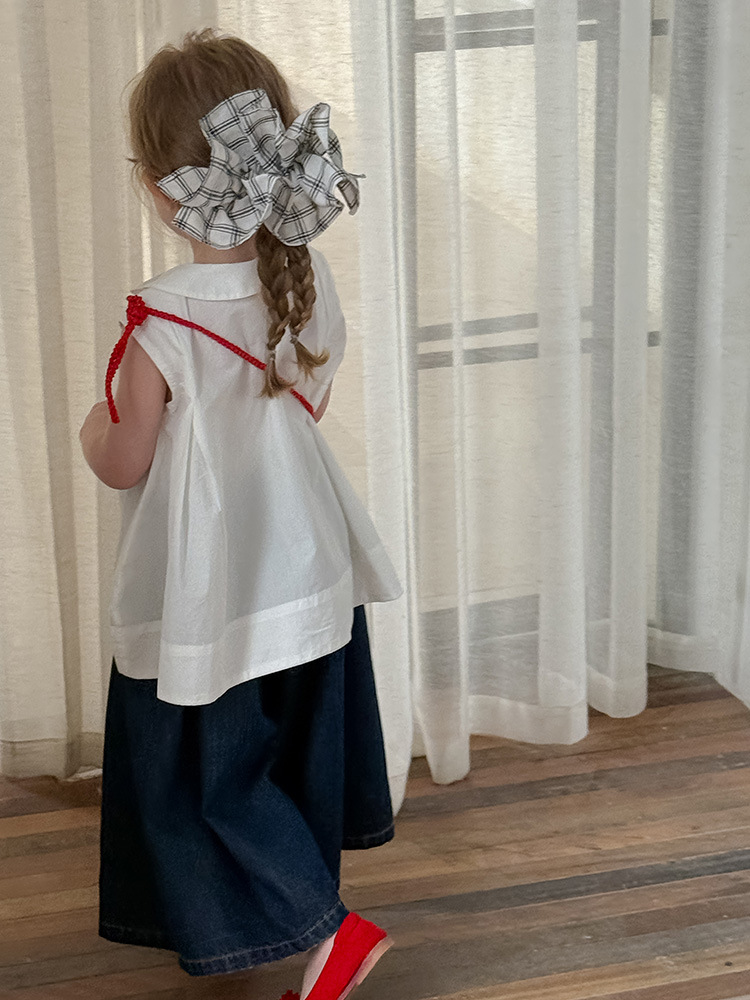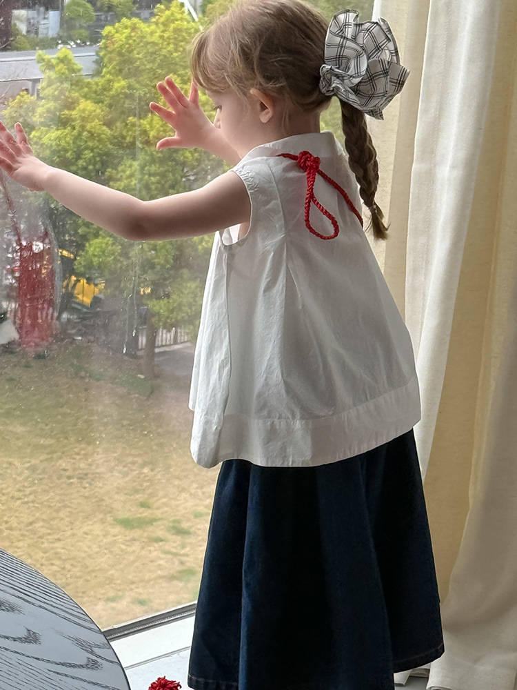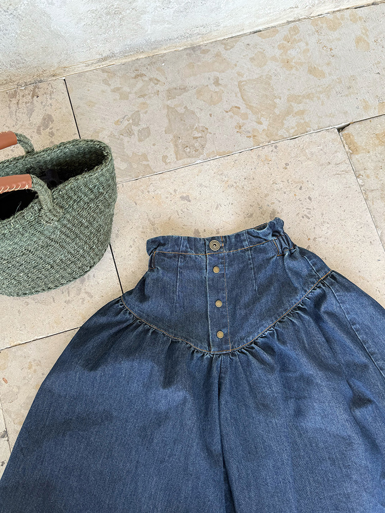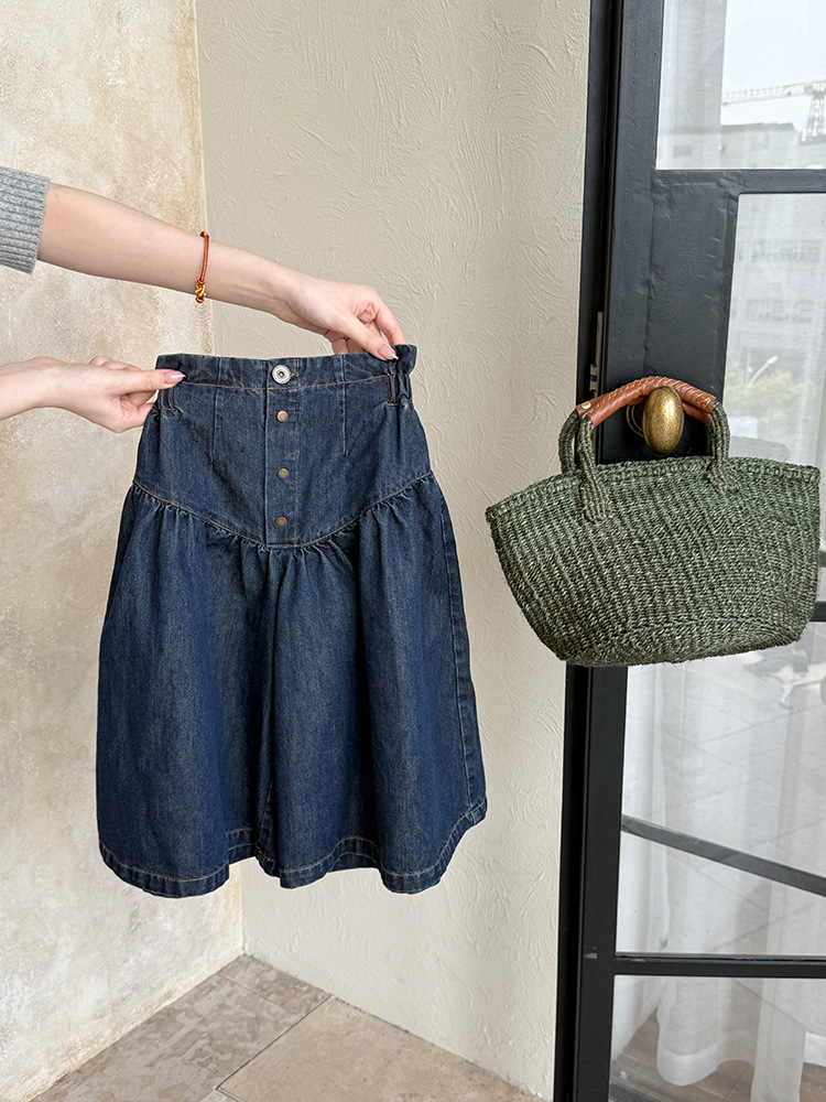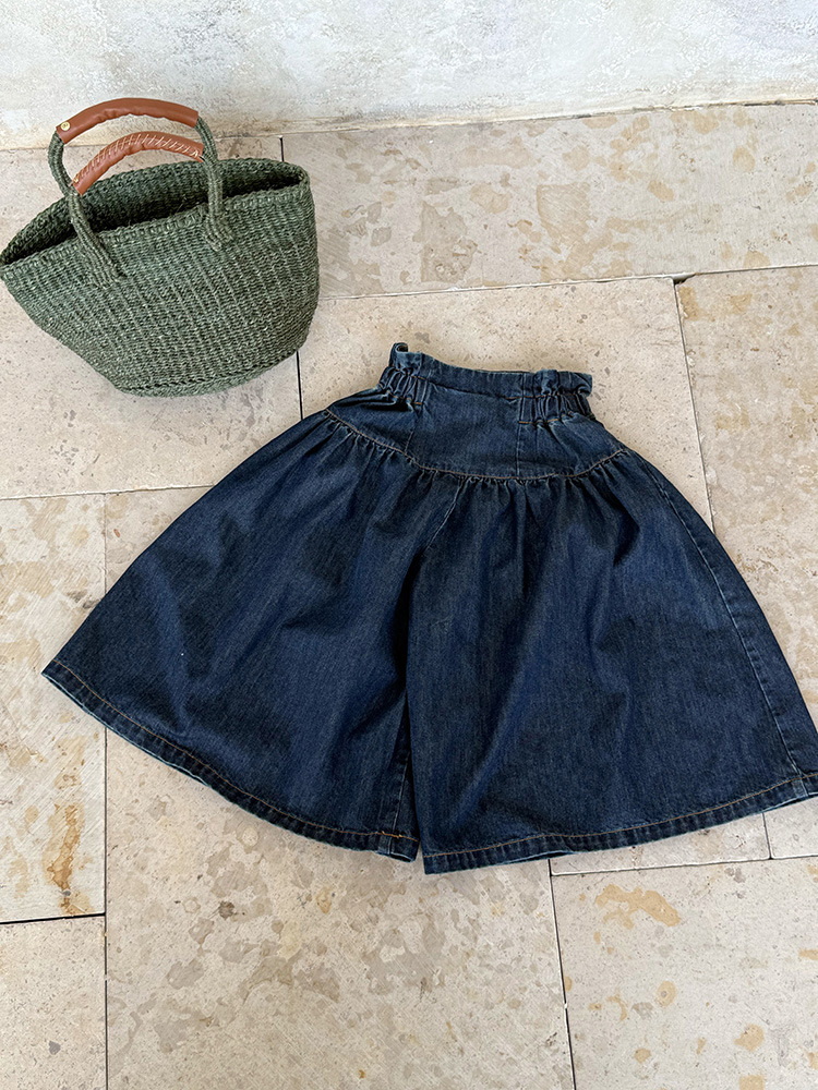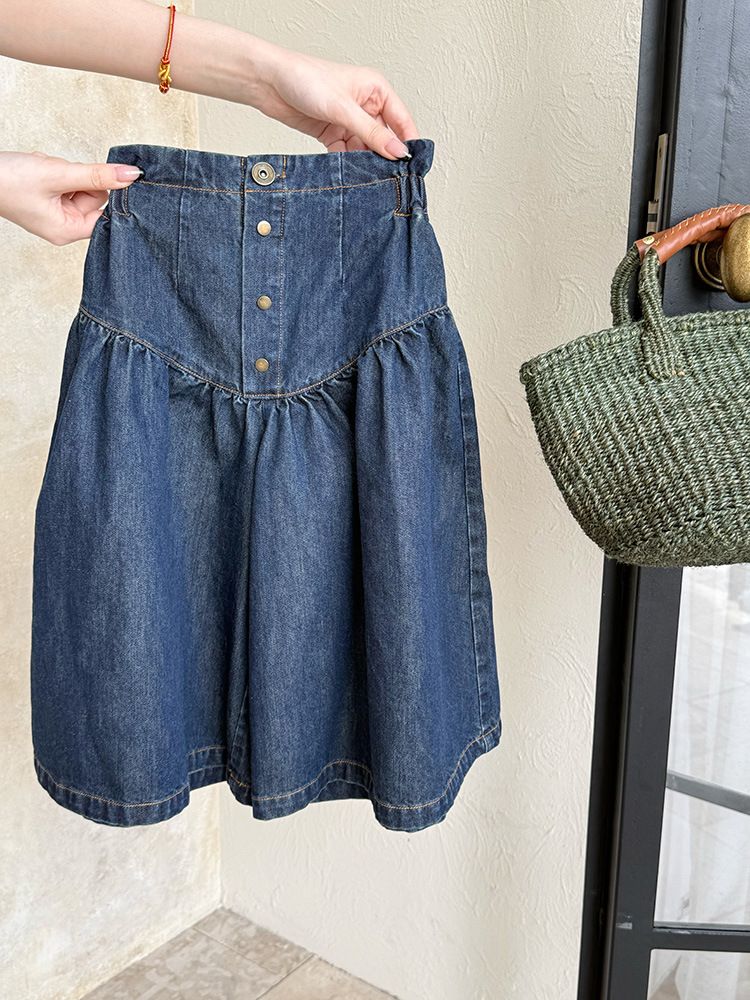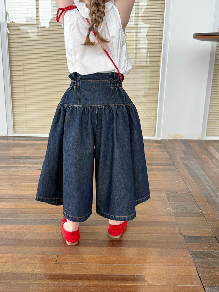 어린이 높은 허리 데님 Culottes 2025 여름 새 한국 여자 잘 맞는 데님 자른 바지스토어 가기