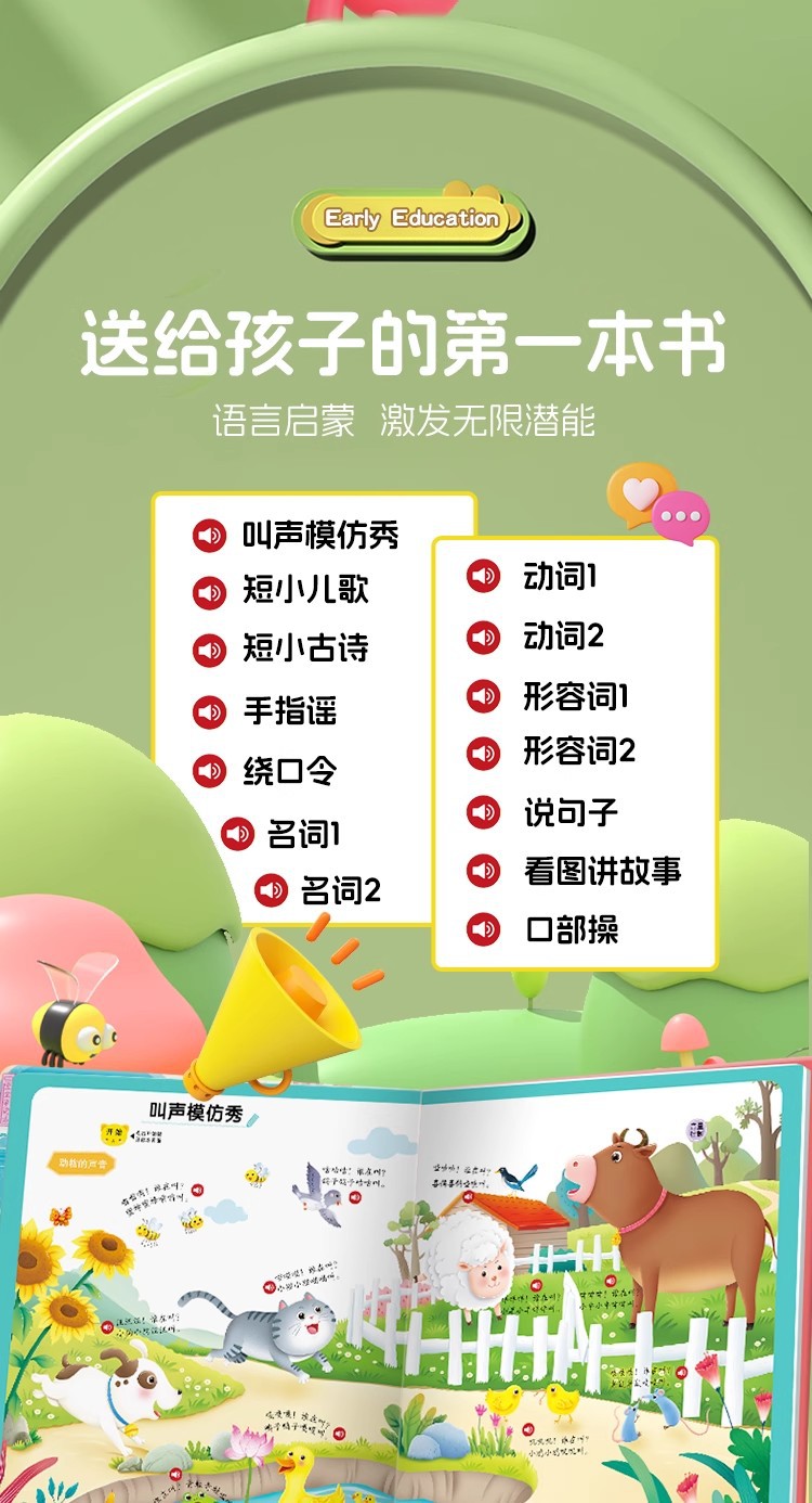 아기가 말하는 법을 배우고 언어 계몽 어린이 0-3세 조기 교육 독서 오디오 북 말하는 오디오 북 장난감스토어 가기
