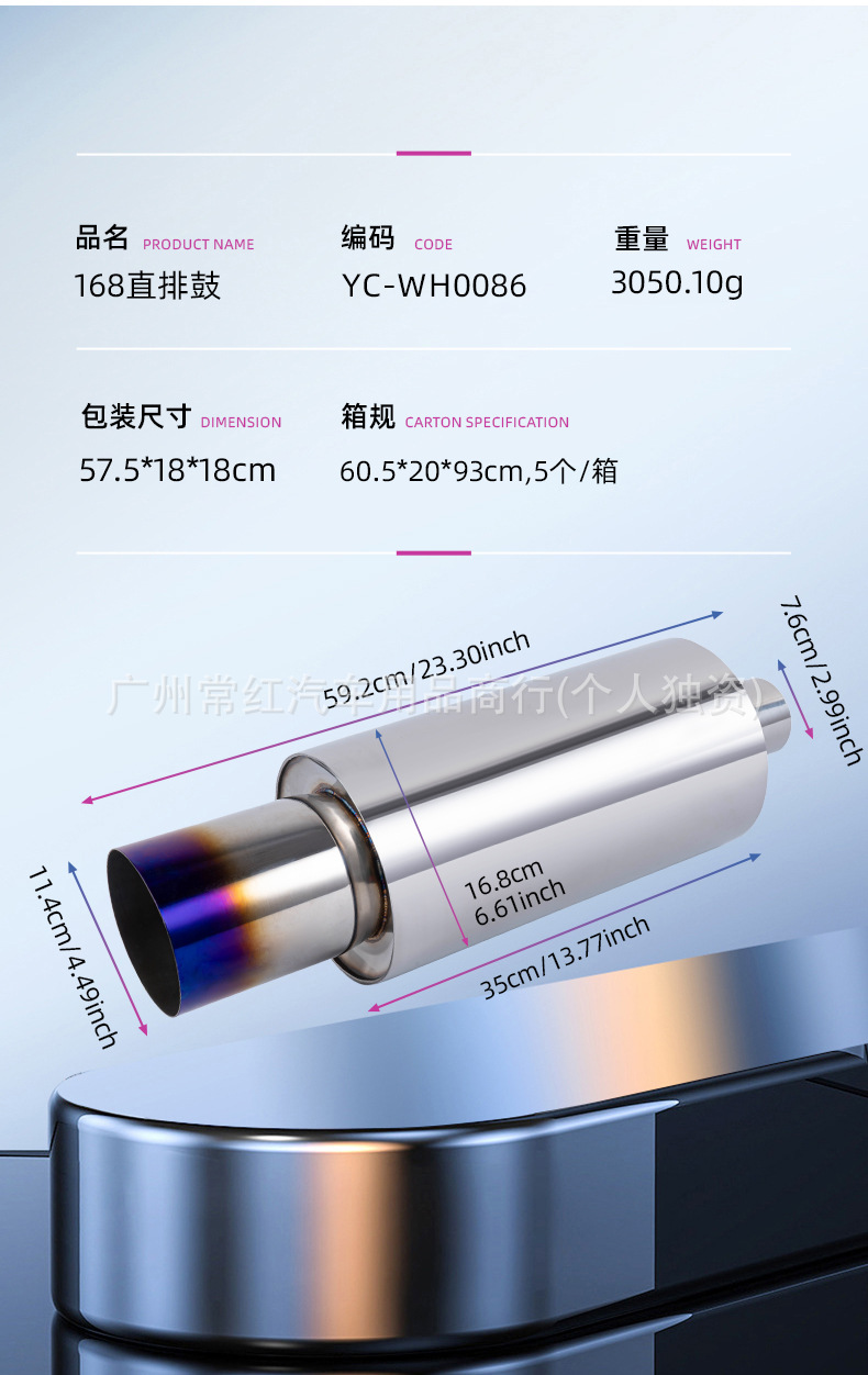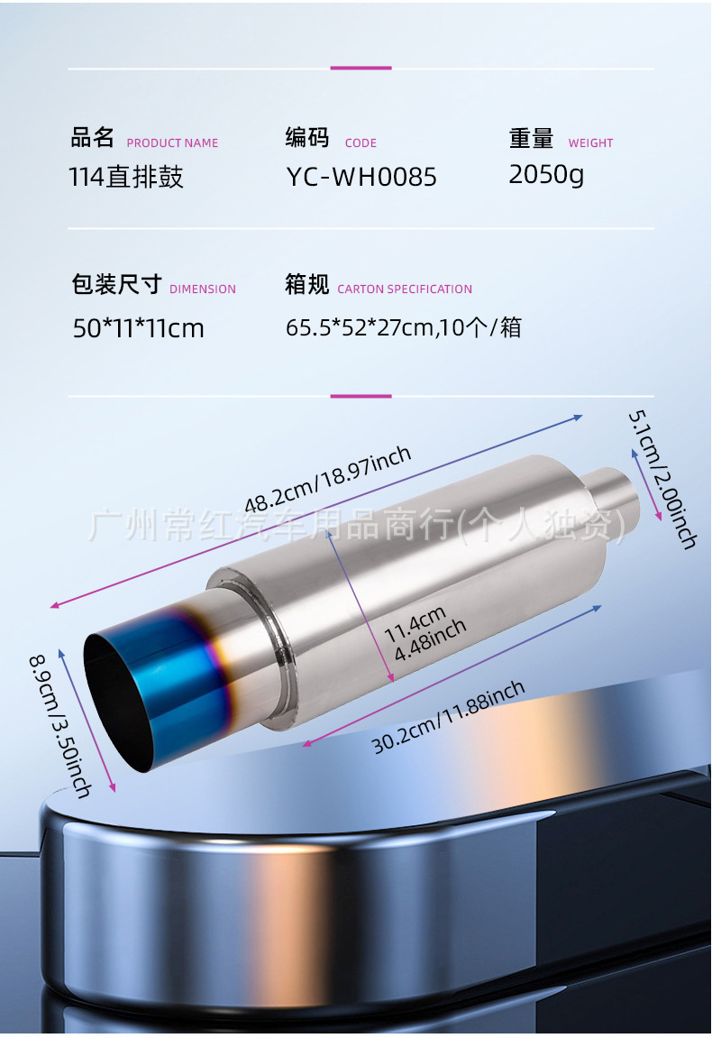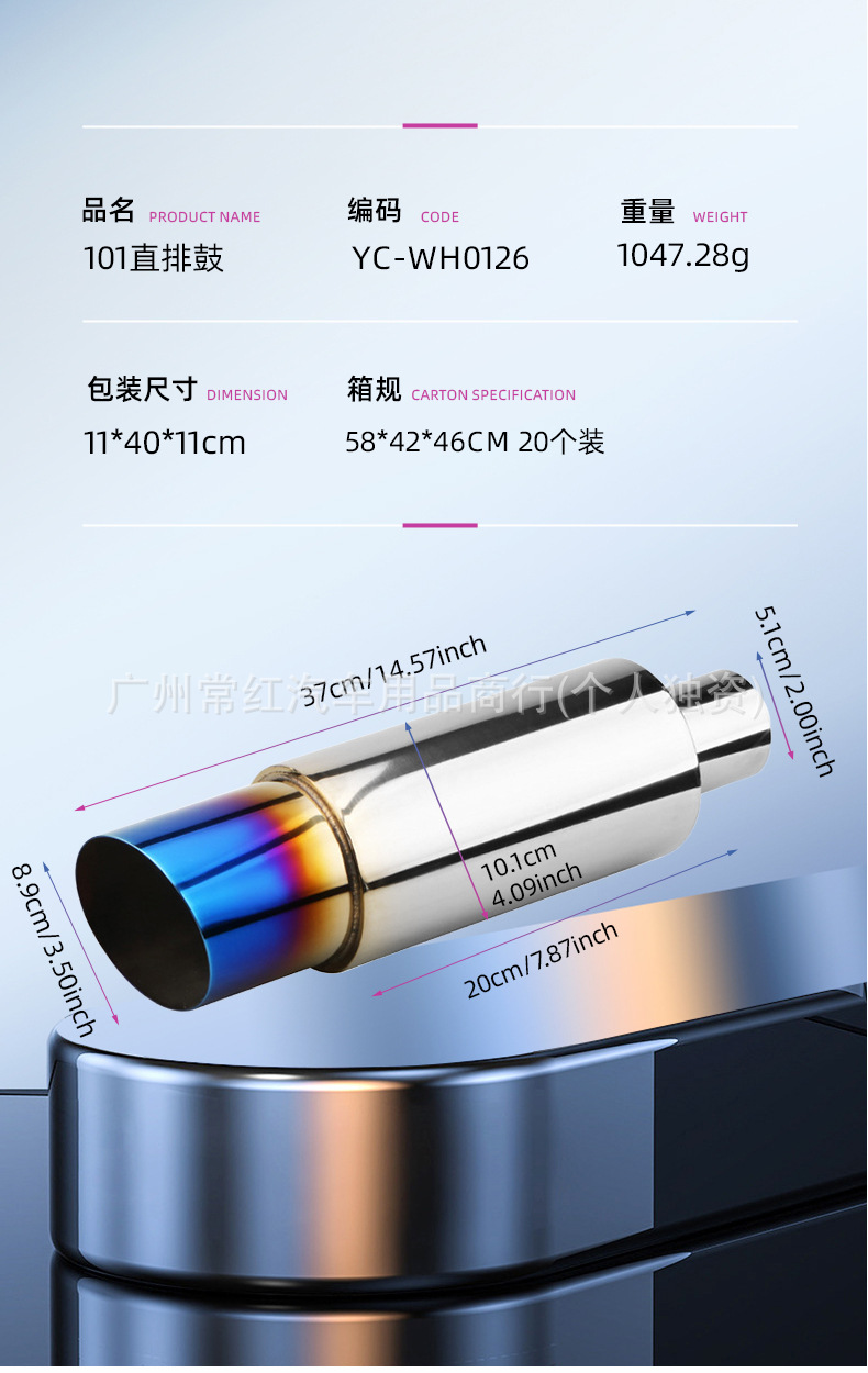 공장 직접 자동차 수정 범용 인라인 드럼 스테인레스 스틸 인라인 드럼 머플러 후면 배기 드럼 파이프 꼬리 목스토어 가기
