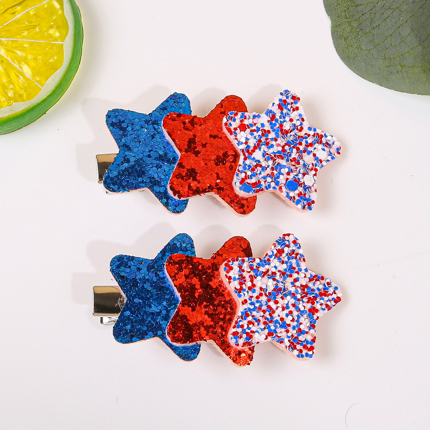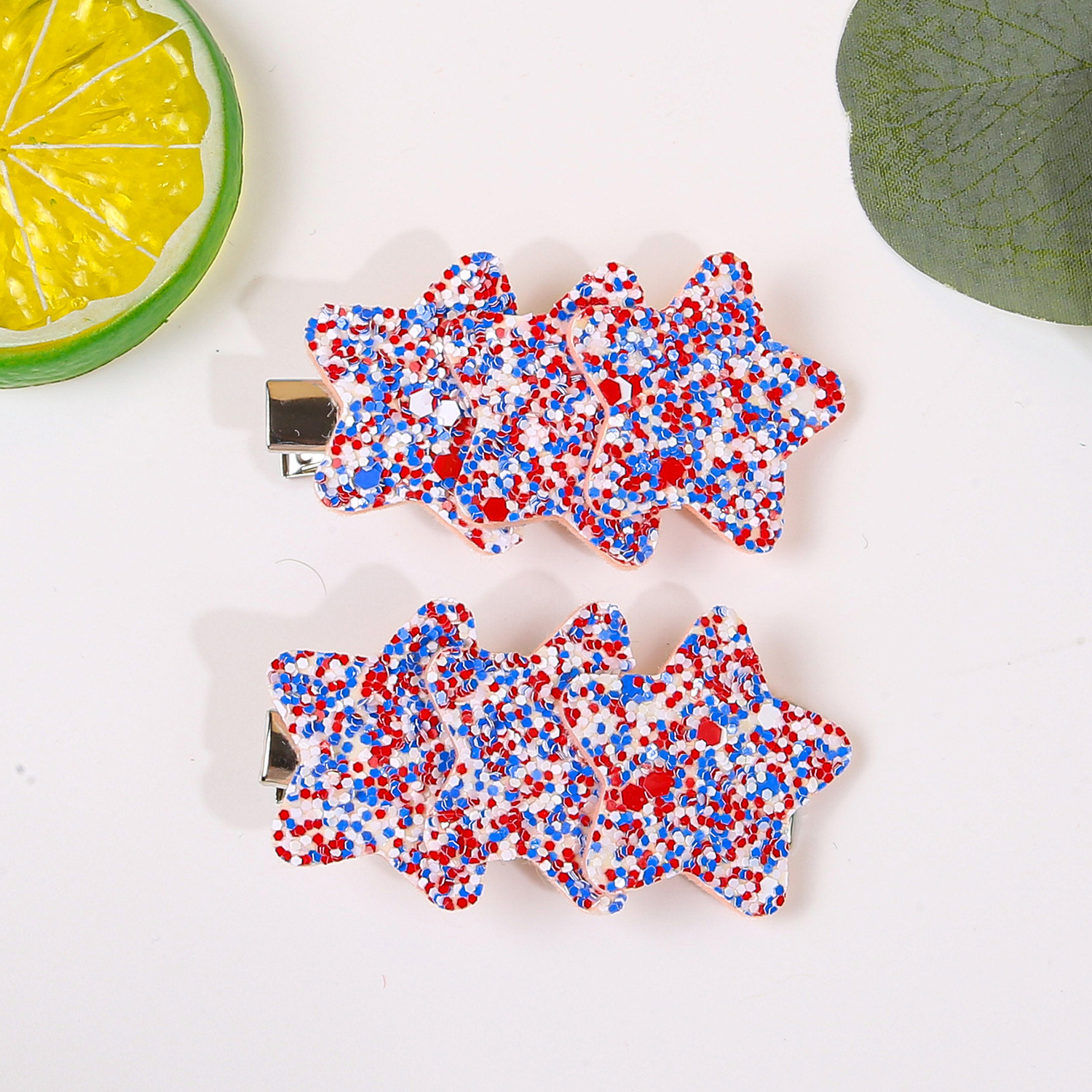 【名称】新款美国独立日星星发夹红蓝白葱粉星星发夹侧边刘海夹独立日节日发饰