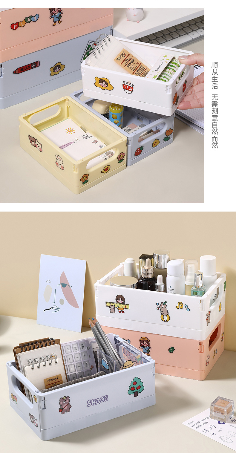 데스크탑 보관 바구니 접이식 보관 바구니 플라스틱 주방 잡화 보관 상자 한국 가정용 일일 도매