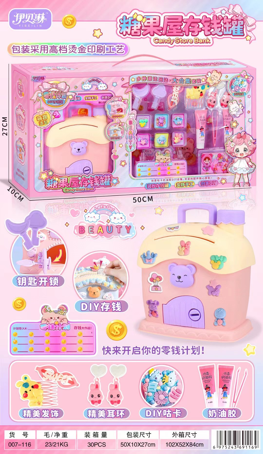 소녀의 선물 상자 만화 DIY 캔디 하우스 크림 접착제 Guka 어린이 돼지 저금통 장난감 교육 및 교육 갱신 선물