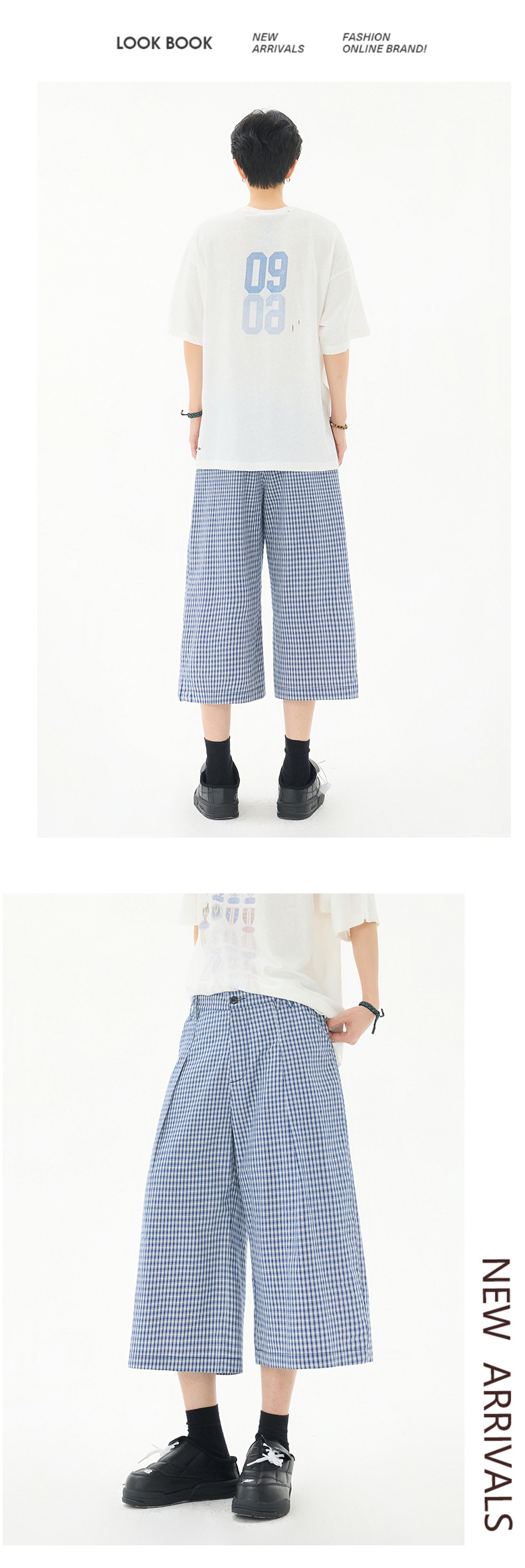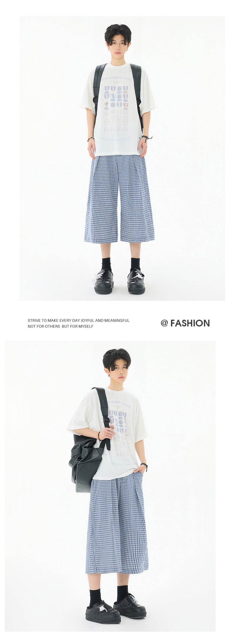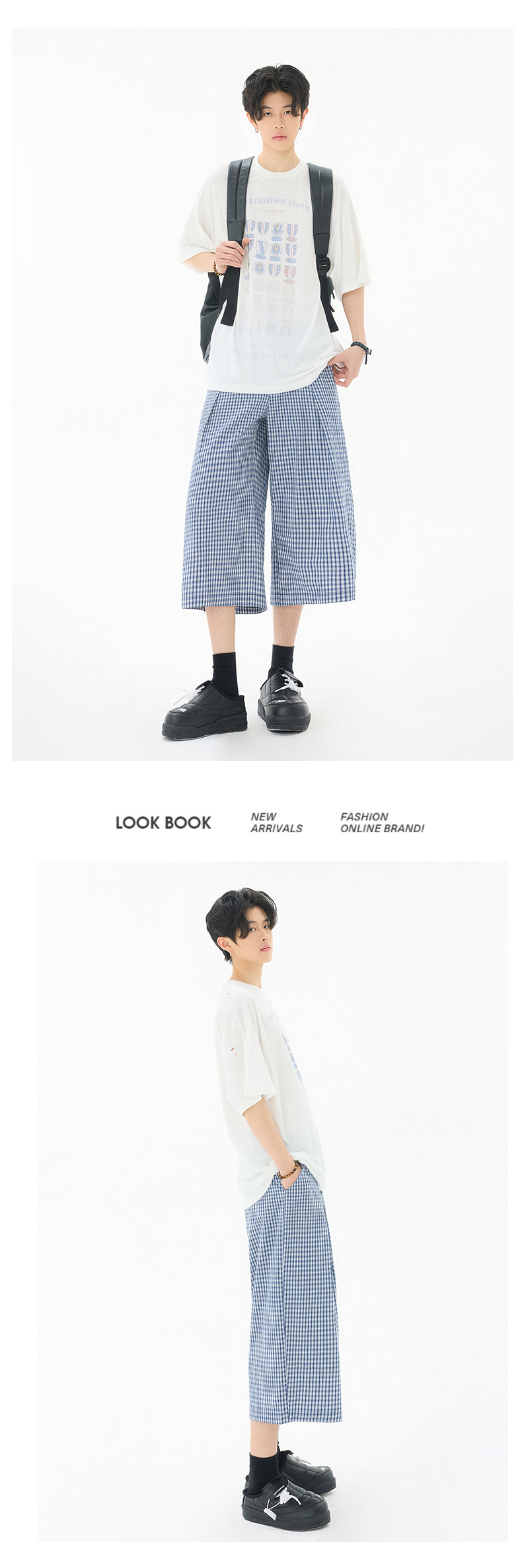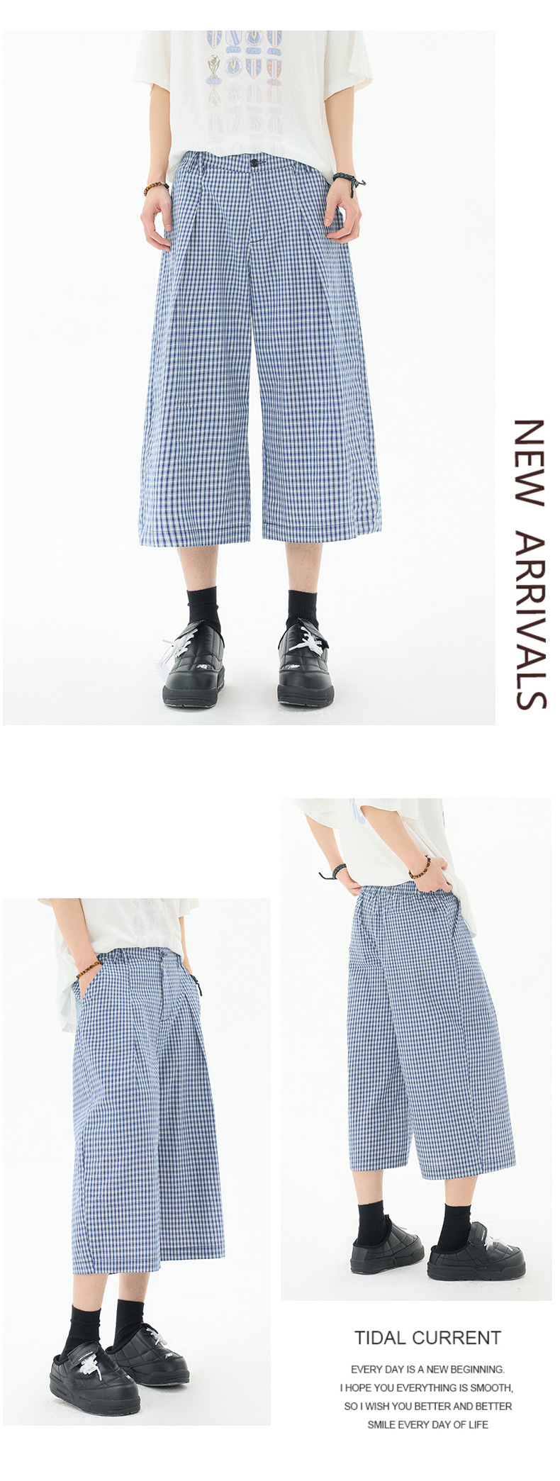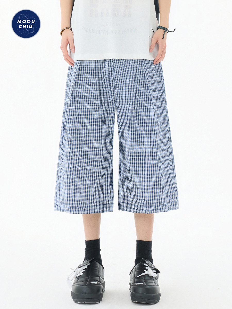 Muqiu 남성복 ∠ 패션 브랜드 미국 격자 무늬 자른 캐주얼 바지 남녀 커플 느슨한 스트레이트 반바지